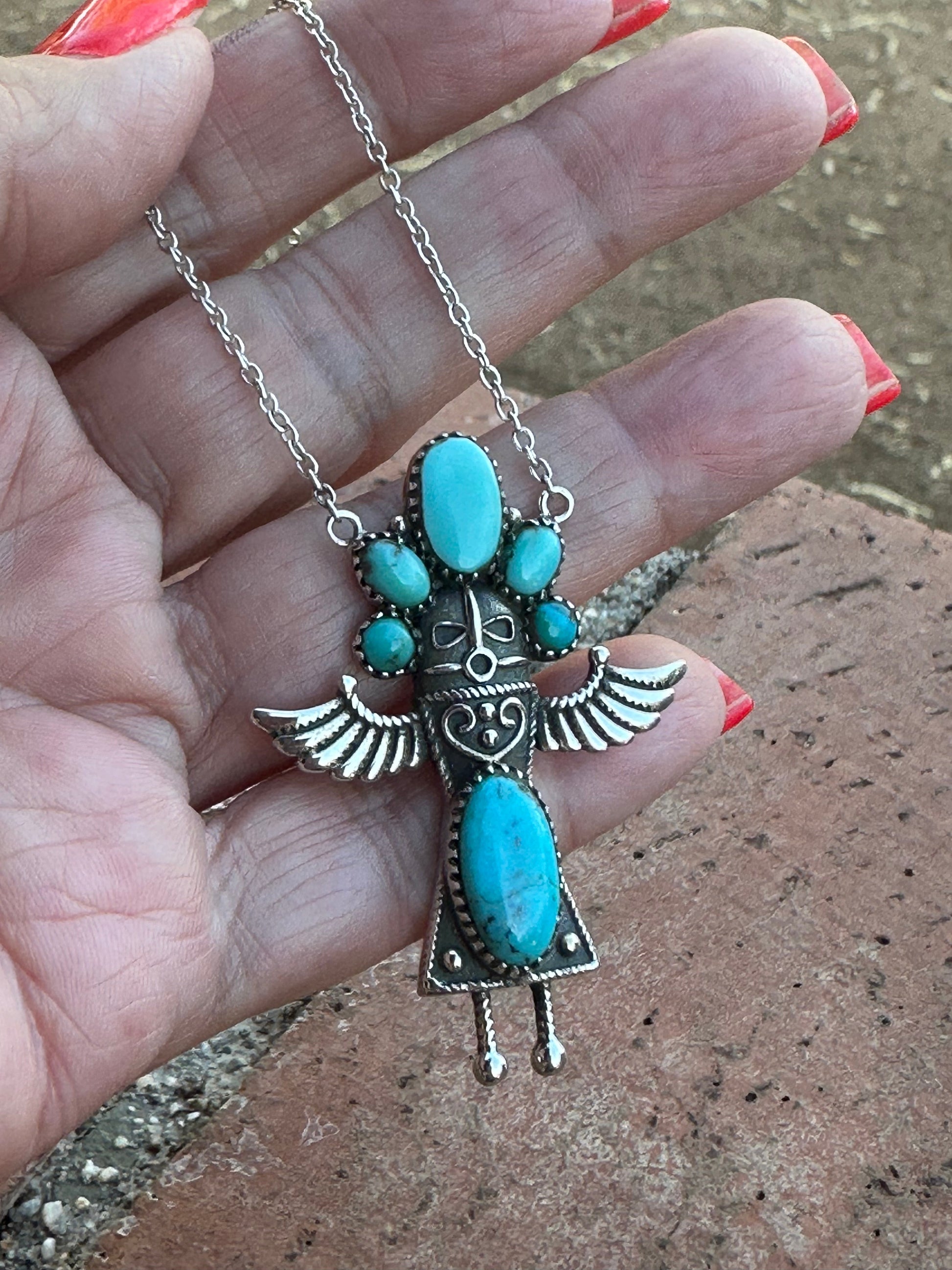Gorgeous Handmade Sterling Silver Kingman Turquoise Nizhoni Maiden Necklace