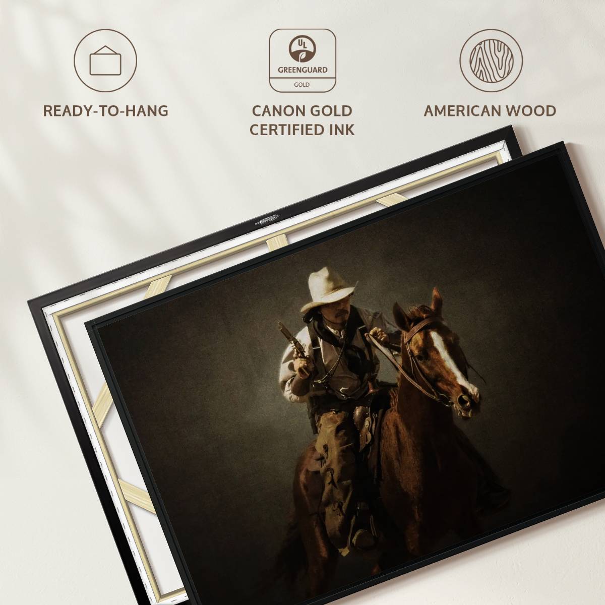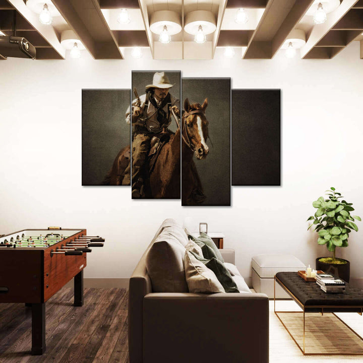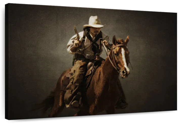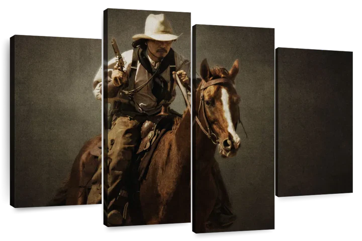 Gun Toting Cowboy Wall Art adds a western touch of old west authenticity to your walls. This Western canvas print is sure to add character to your space and complement any farmhouse style decor.