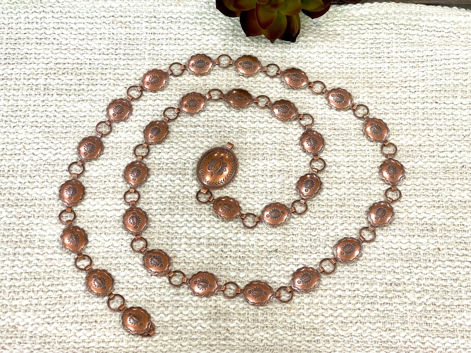 Vintage handmade copper beaded belt. Measuring 40 1/2 inches long. Such a beautiful piece!!