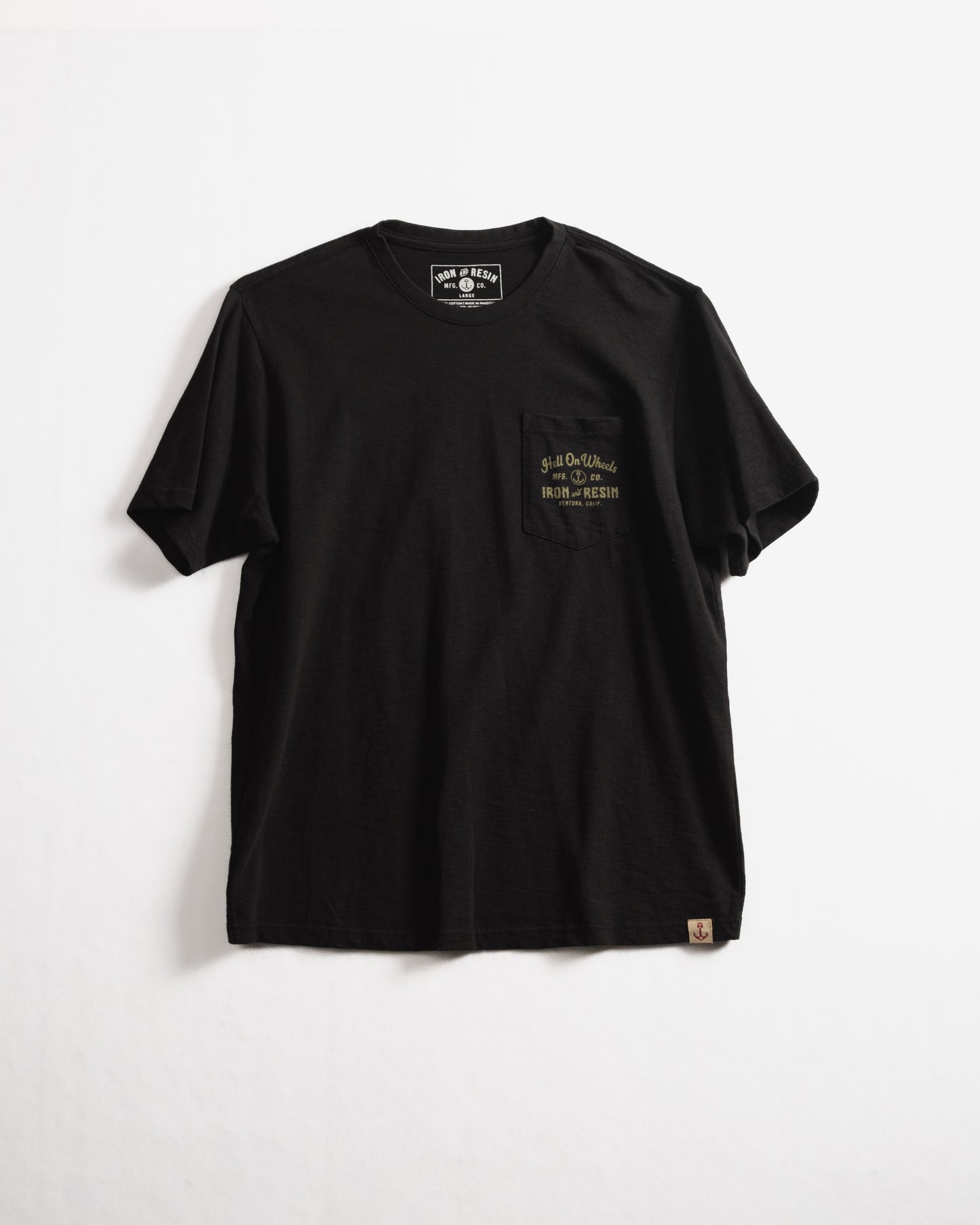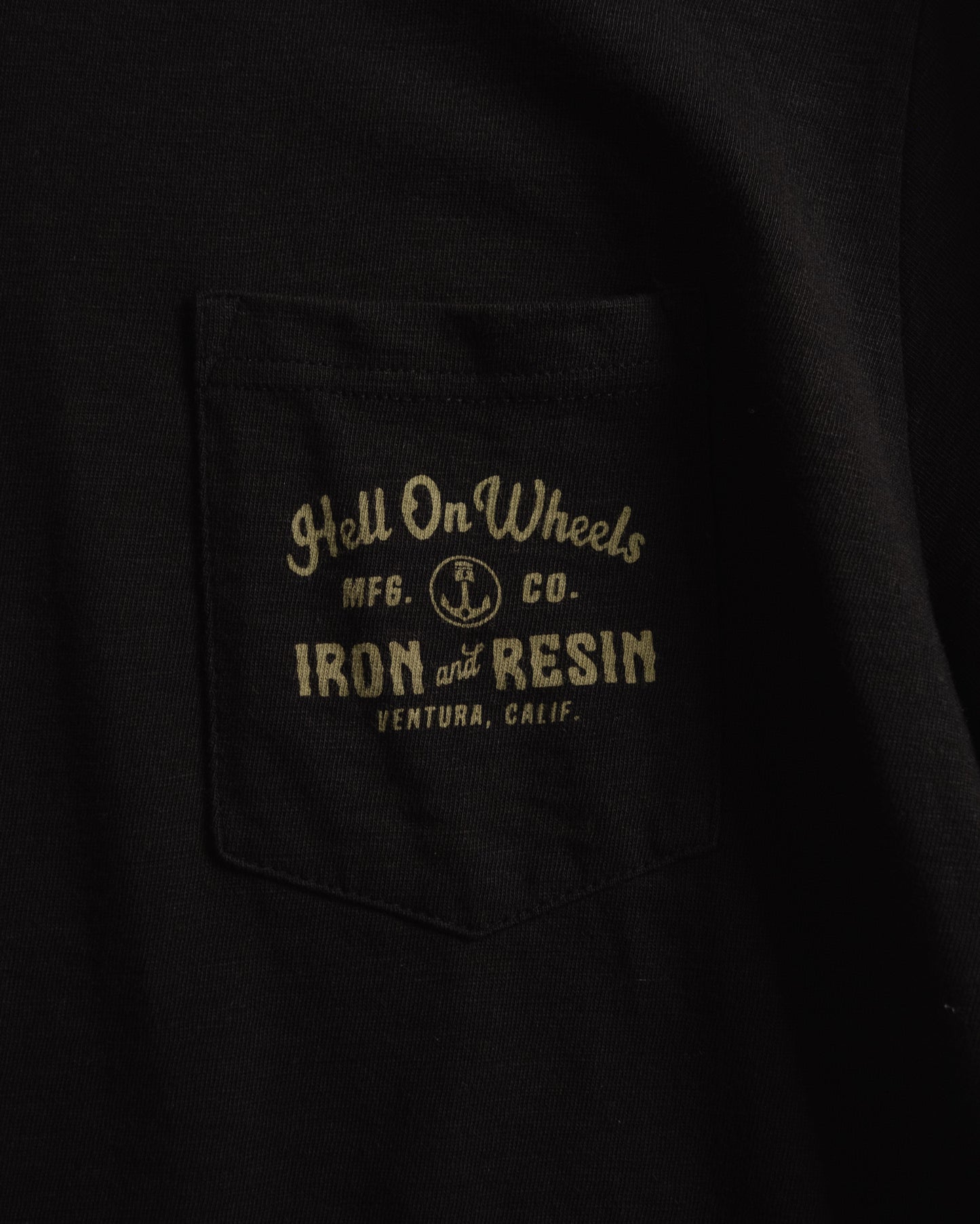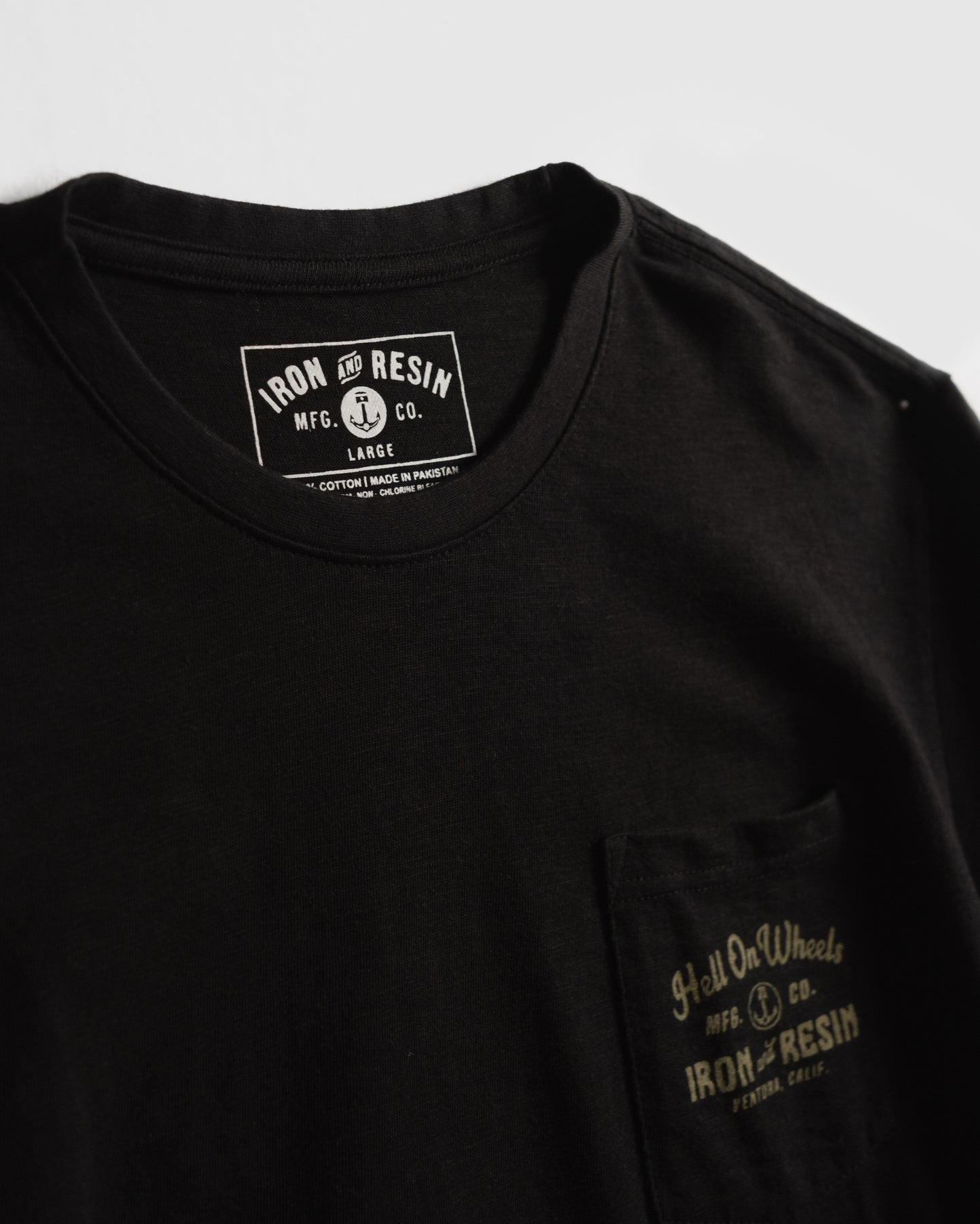 - Iron & Resin custom graphic printed on chest pocket and back
