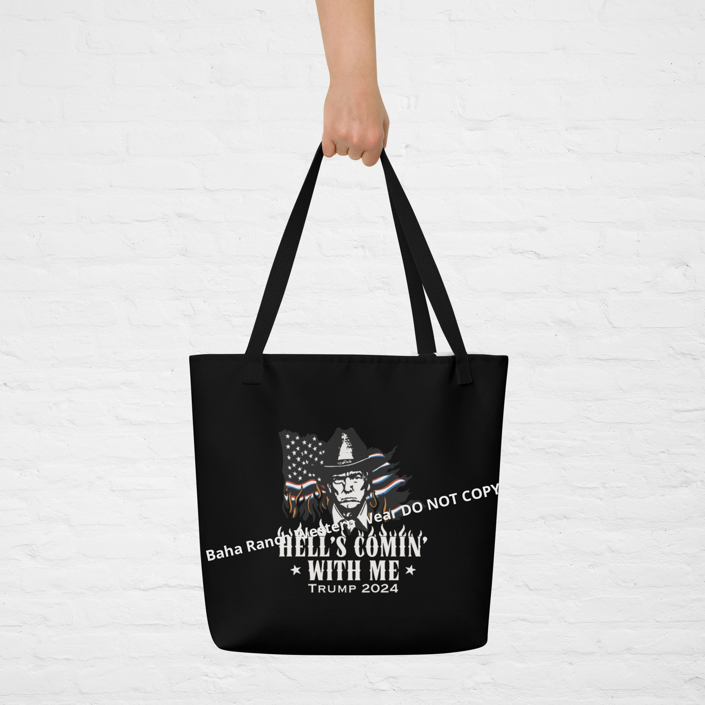 Hells Comin' With Me All-Over Print Large Tote Bag