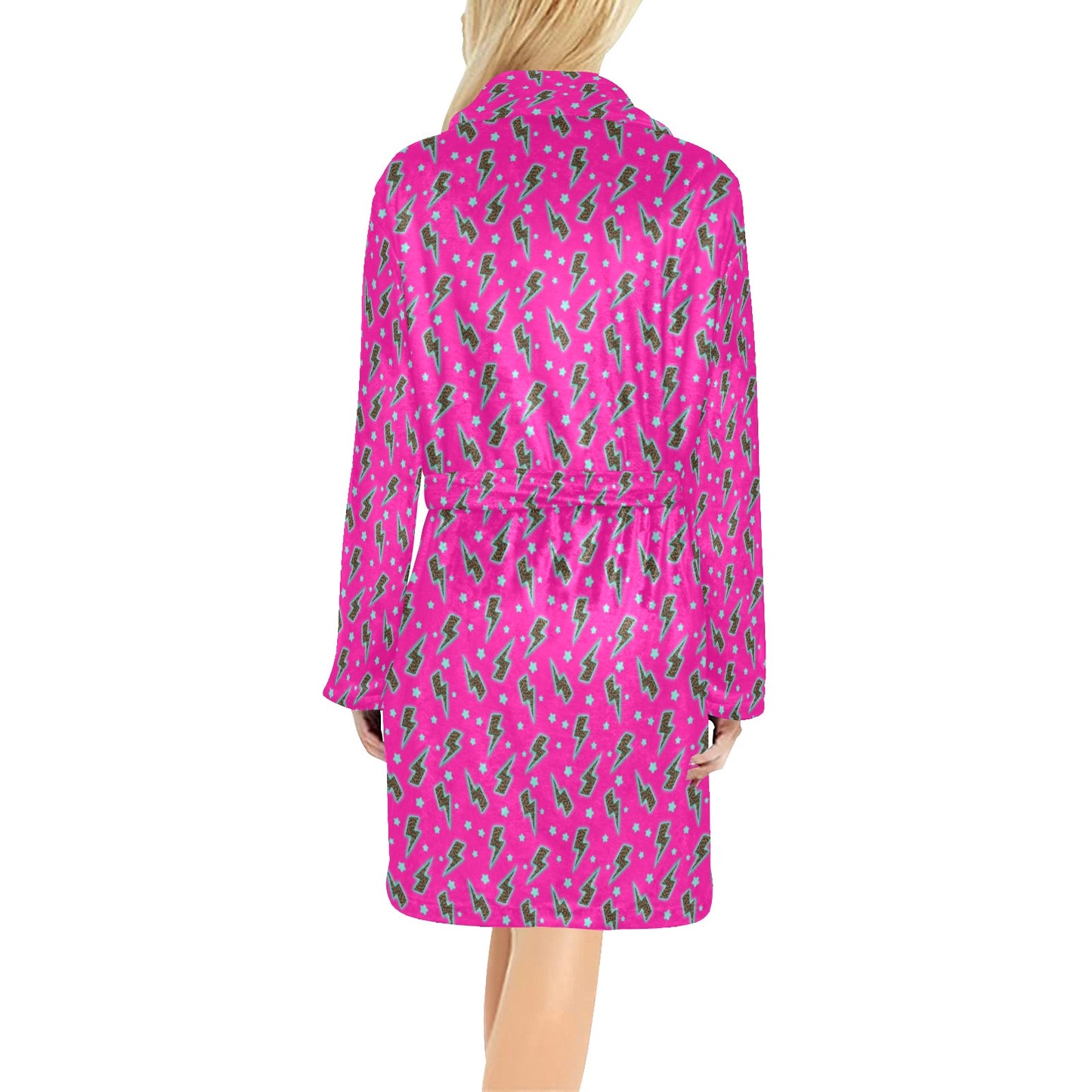 Hot Pink Lightning Bolt Women's Western Bath Robe