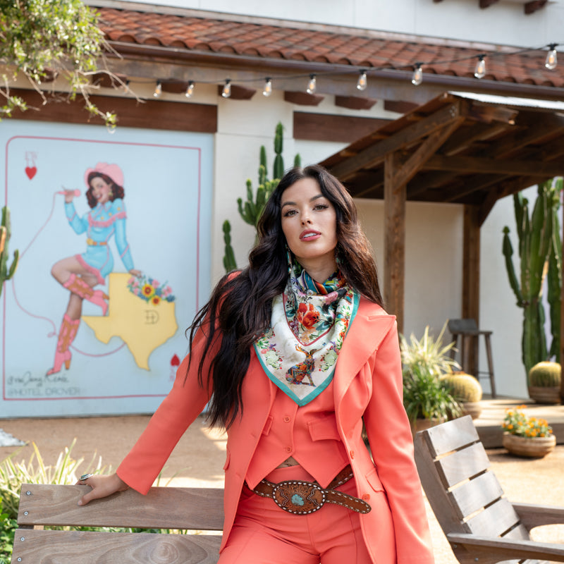 Tips: Just tie one on! Pair with a denim shirt, your favorite suit jacket, jeans and your favorite boots.