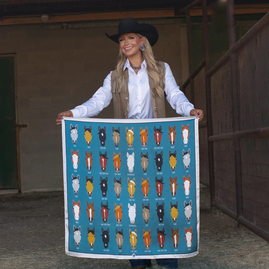 Markings is so much fun! We love the color options, but the story and theme are what draw us in! For a whimsical pop of color and a little bit of story telling. This is the perfect gift for all your horse loving friends! Don't forget Markings when buying baby gifts. This is perfect hung up in a nursery or worn by small kiddos in our Shorty size.