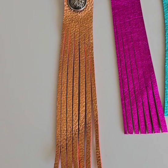 Hand cut metallic genuine leather fringe keychains /purse clip