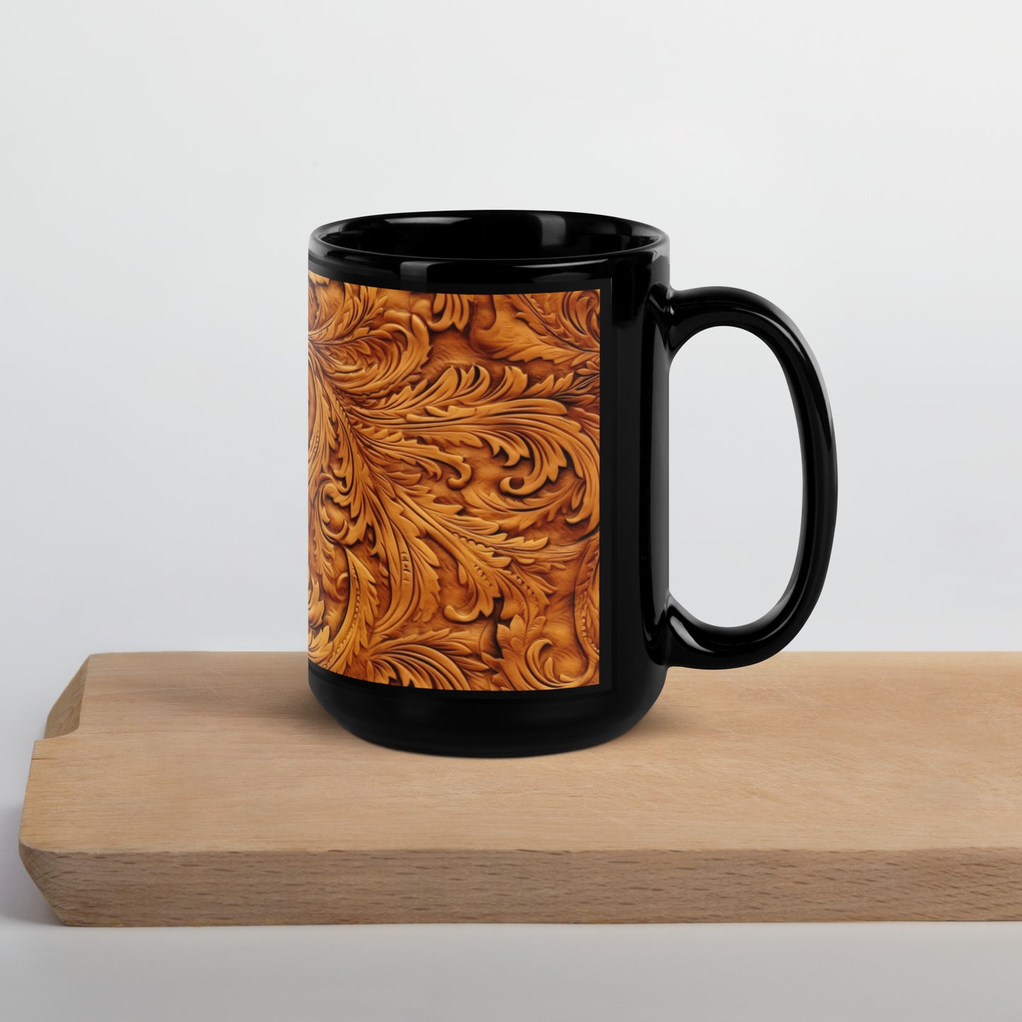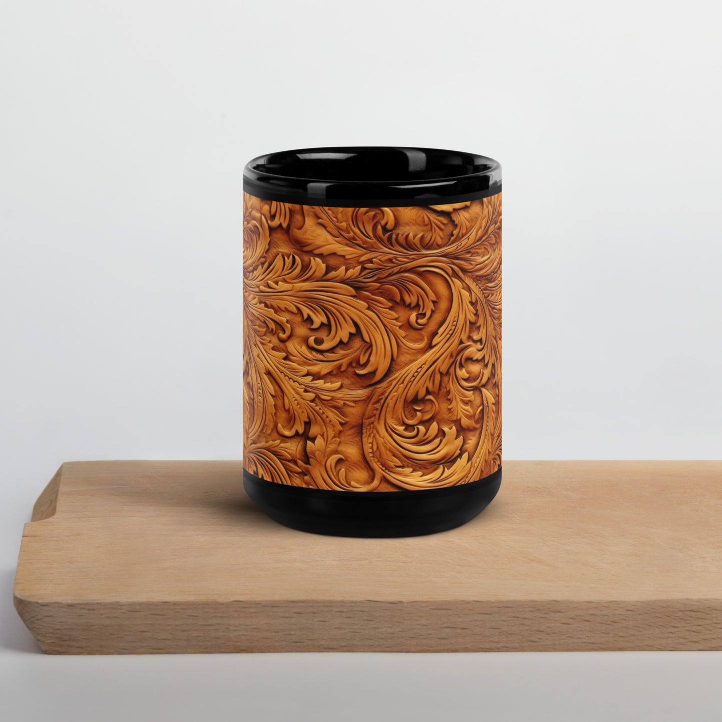 Leather Scroll Print Black Glossy Mug