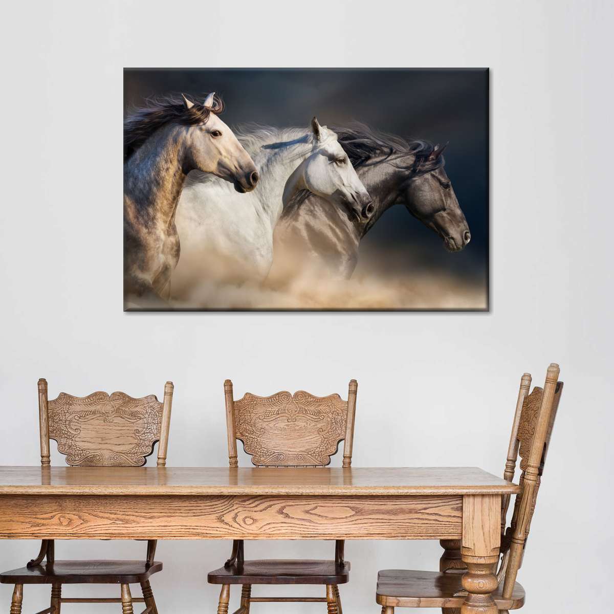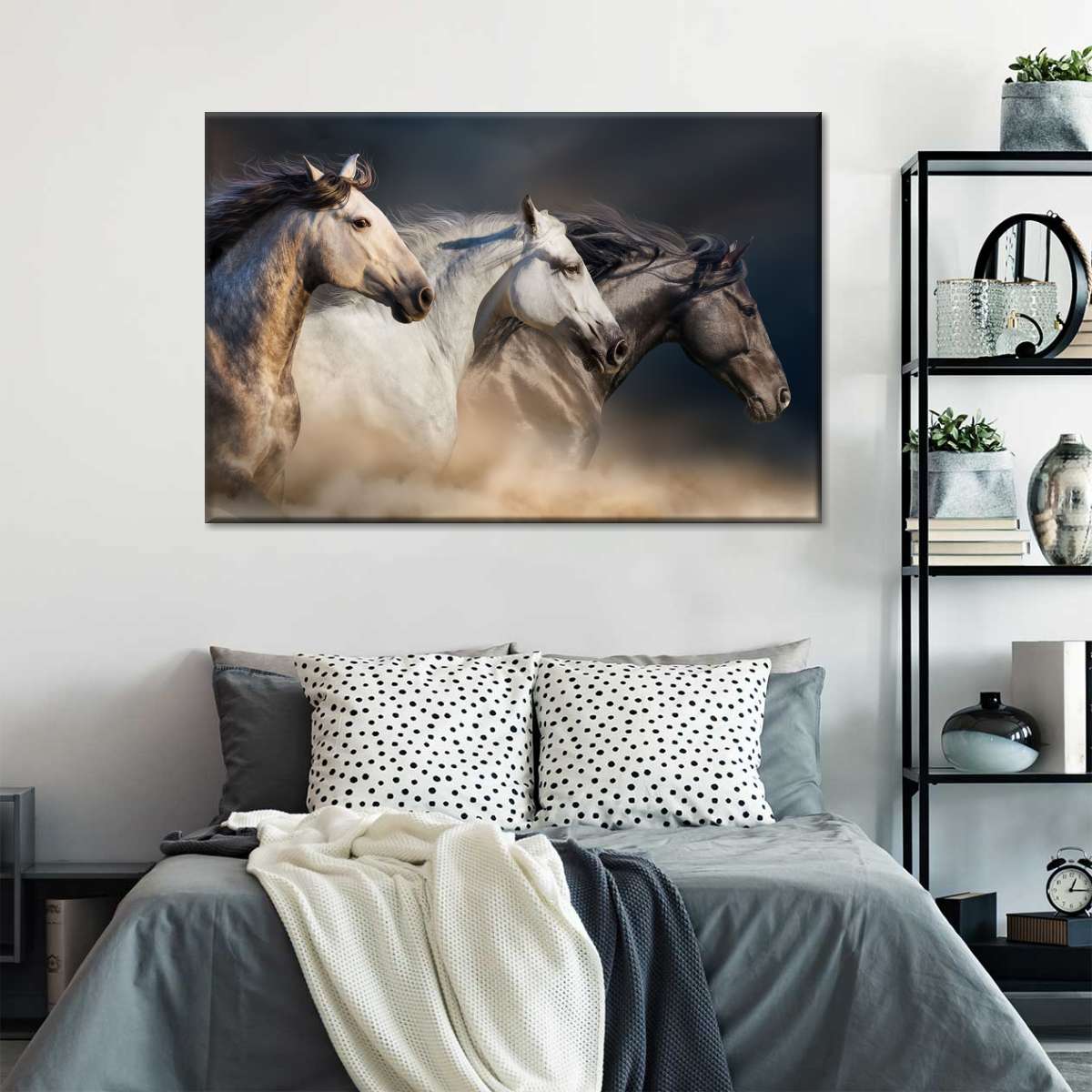 Three Wild Horses Wall Art is sure to add beauty and versatility to any room in your home. Show your love for this noble and friendly animal by placing this stunning art print on your walls.
