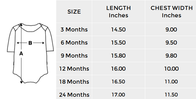 • Sizes: 3months, 6months, 9months, 12months, 18months, 24months. Calculate your size from the measurement chart below please.