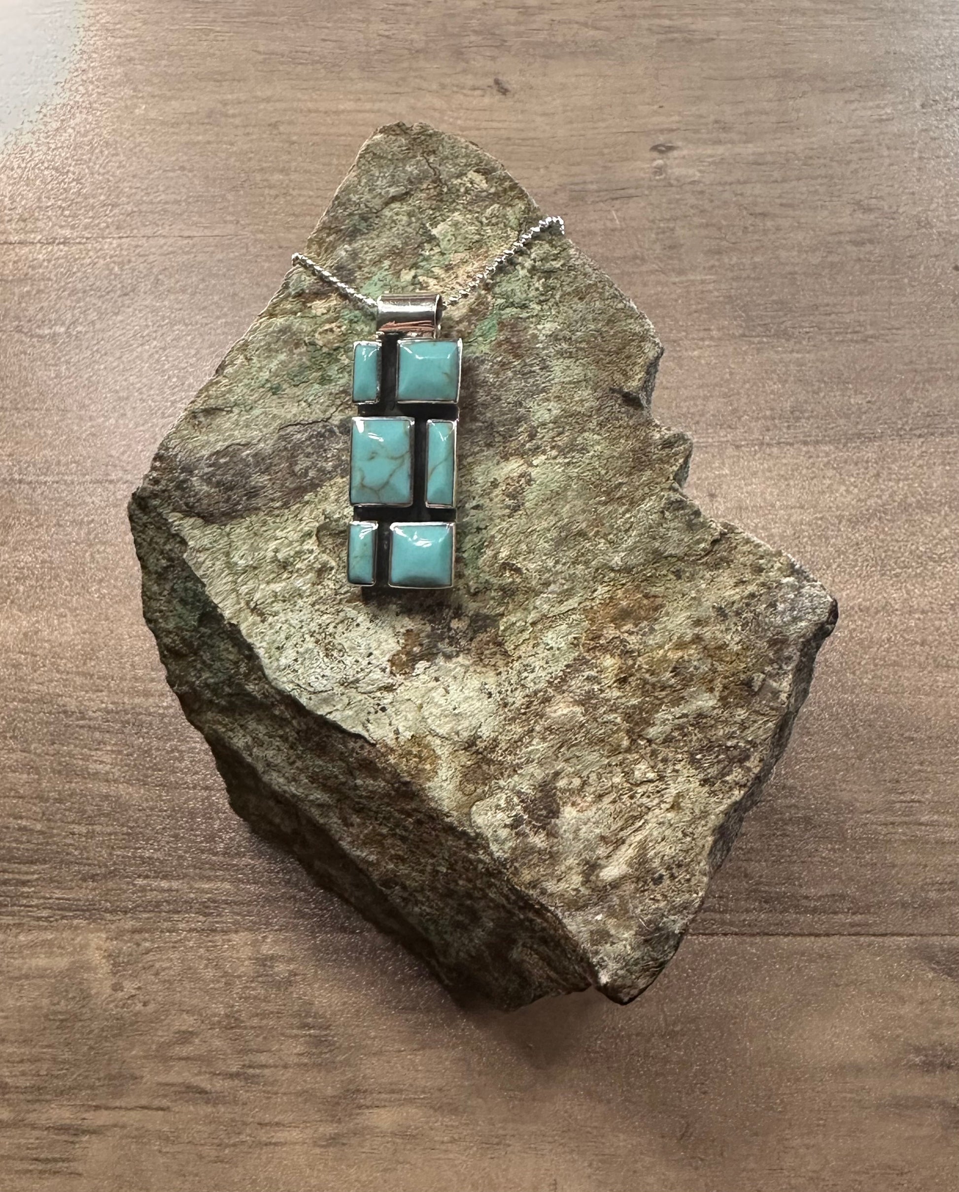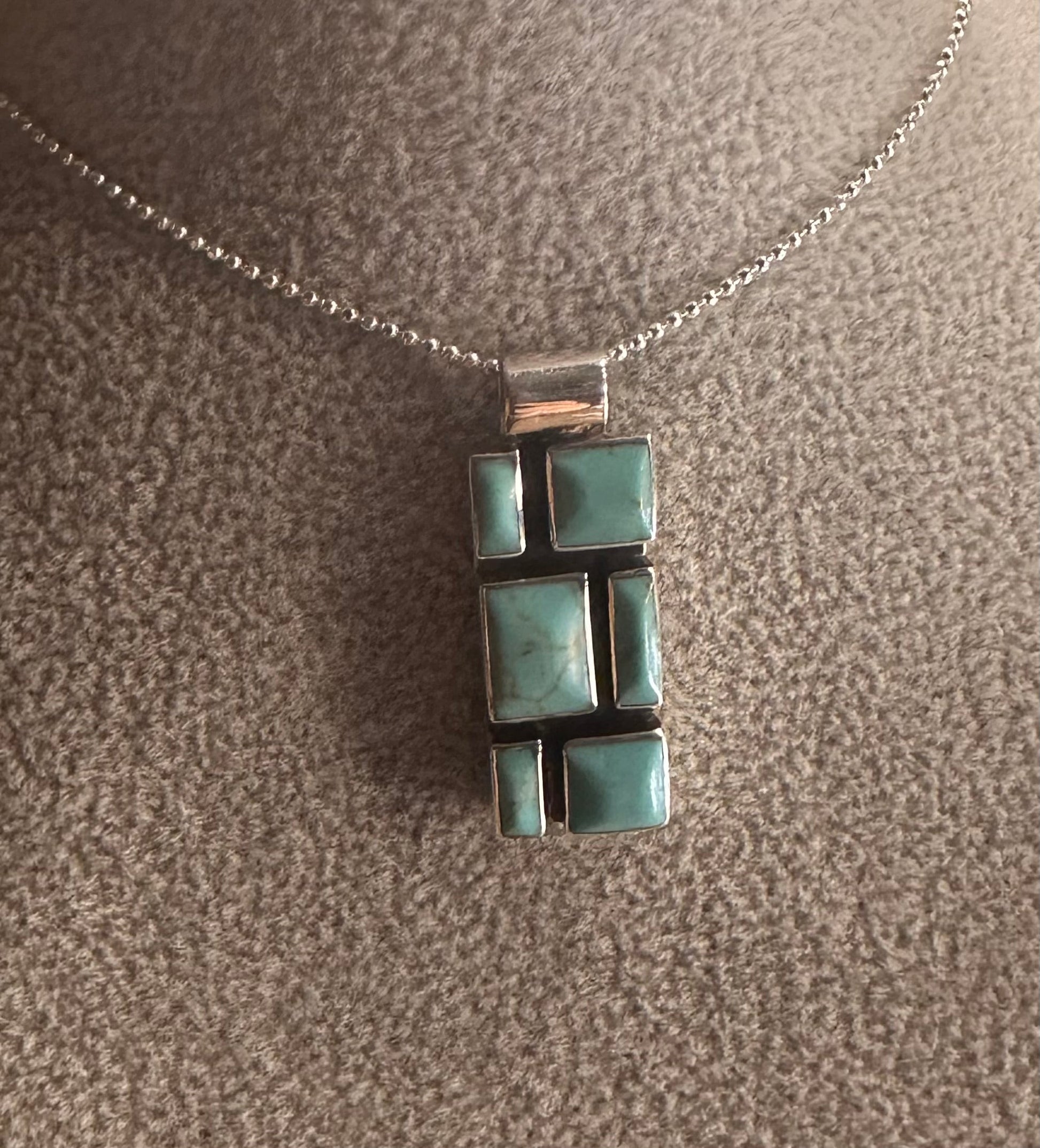 The Mosaic line never goes out of style. This artist put together color ways. Delivered on an 18" sterling silver faceted bolitas chain (pictured).