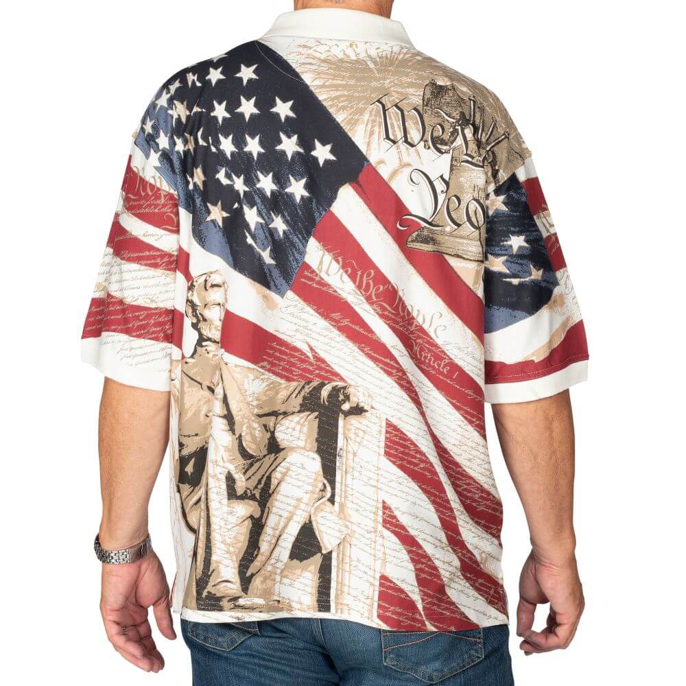 RESTORING HONOR: This shirt features the Constitution of the United States of America as a background, "We the People" clearly written with the image of the Liberty Bell and the iconic American president Abraham Lincoln. It doesn't get more patriotic than this. Also featured is a rib knit collar and cuffs with a three button placket for styling preferences.