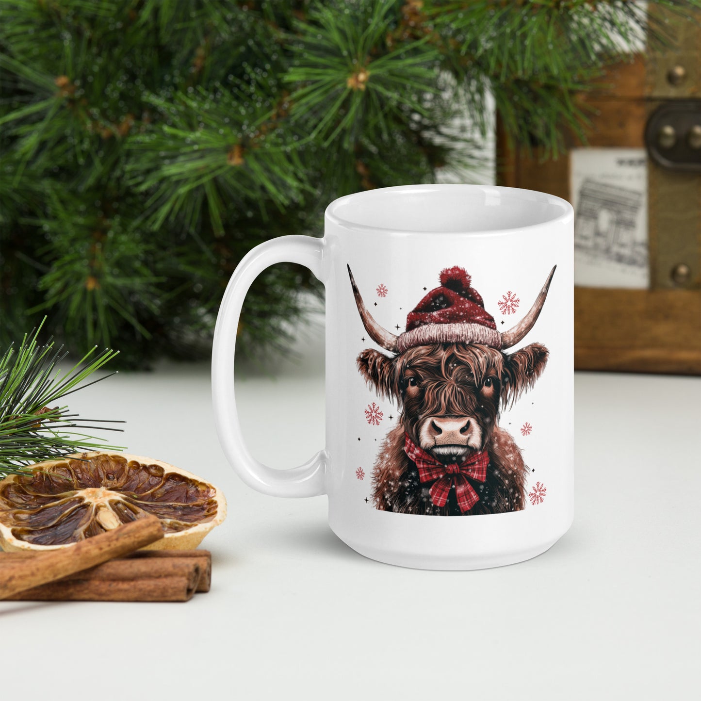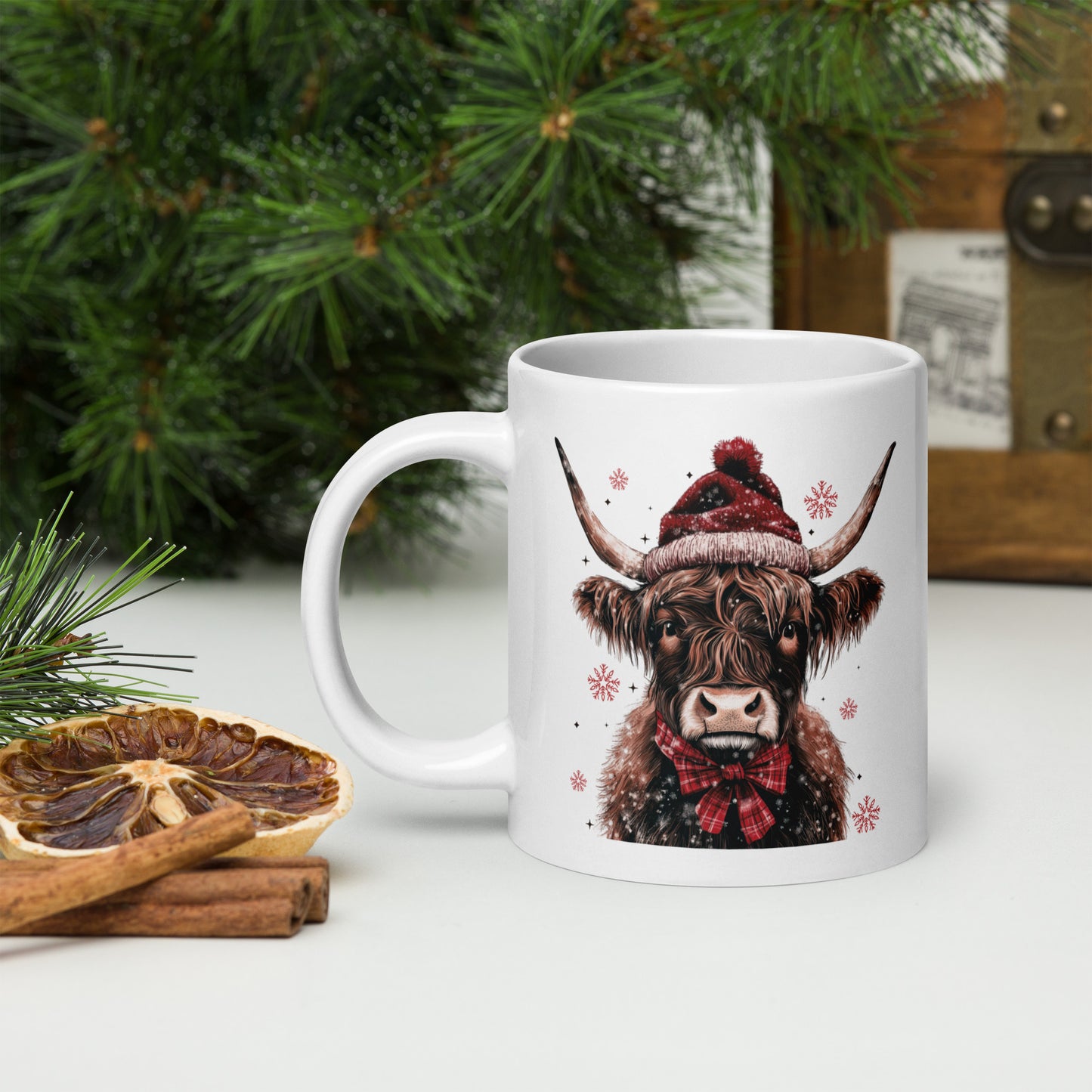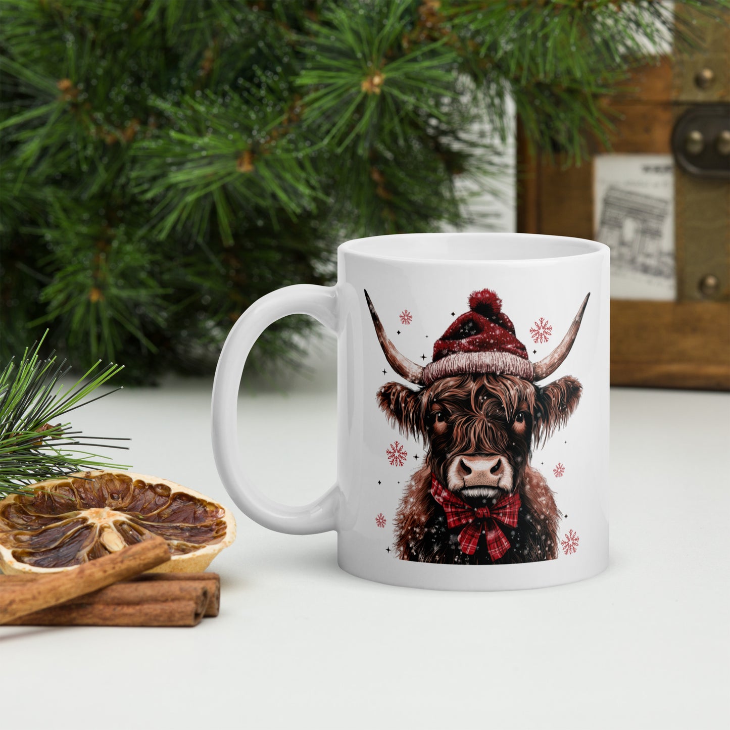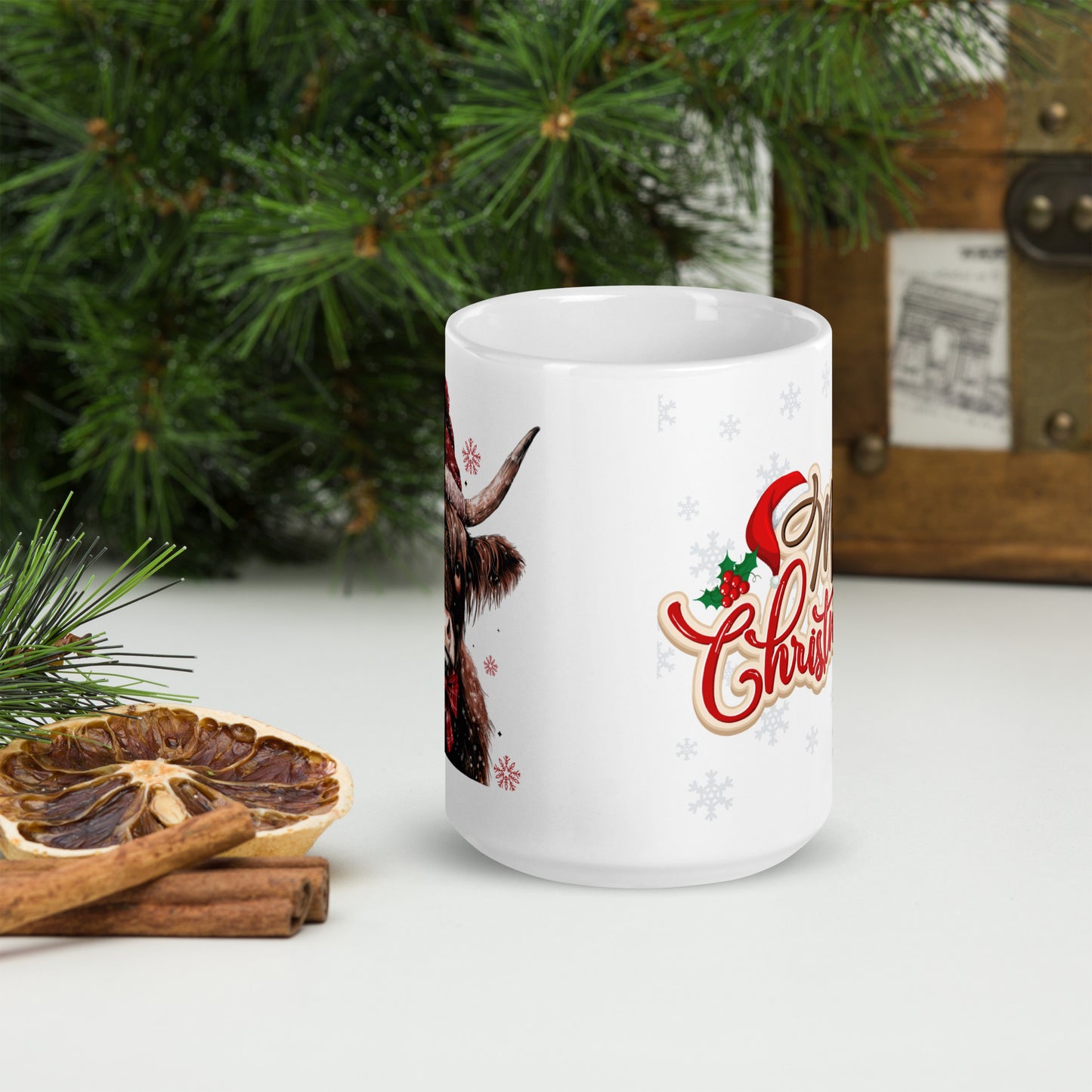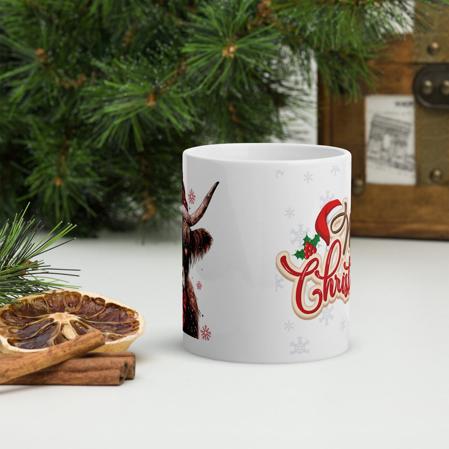 Merry Christmas Highland White Glossy Mug