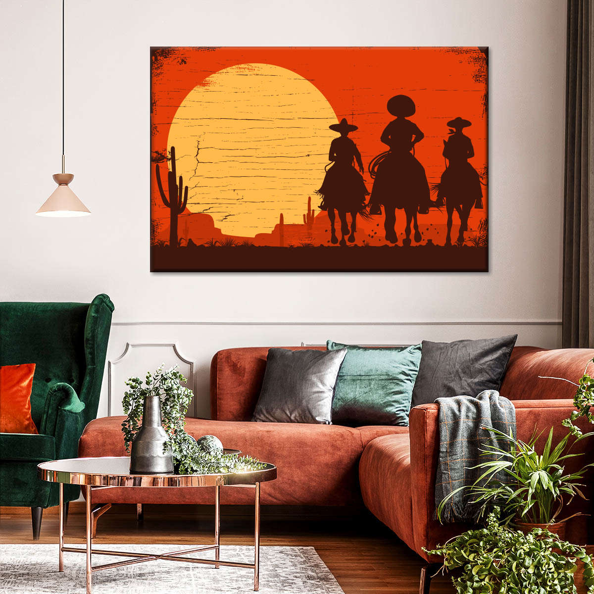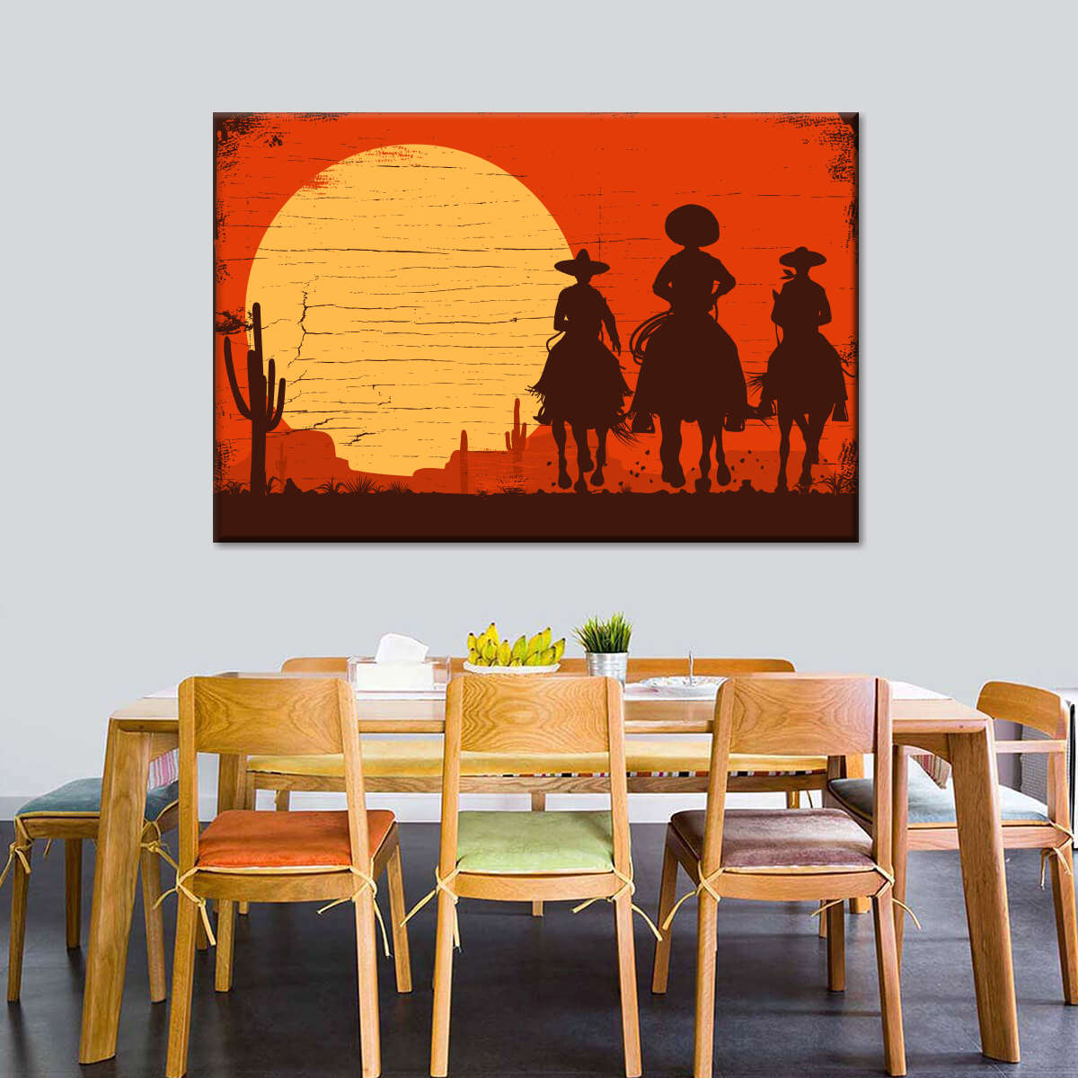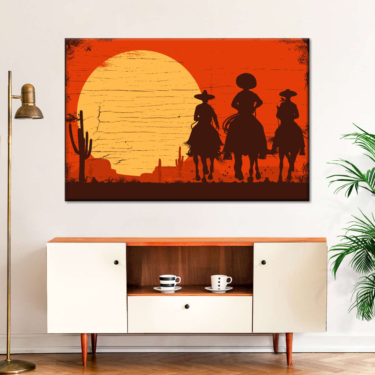 Mexican Cowboys Wall Art adds a western touch of old west authenticity to your walls. This Western canvas print is sure to add character to your space and complement any farmhouse style decor.