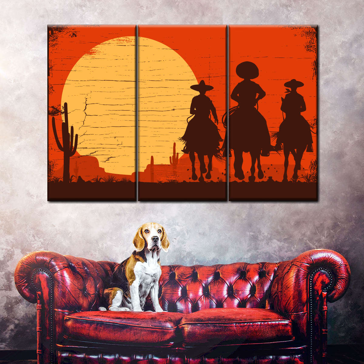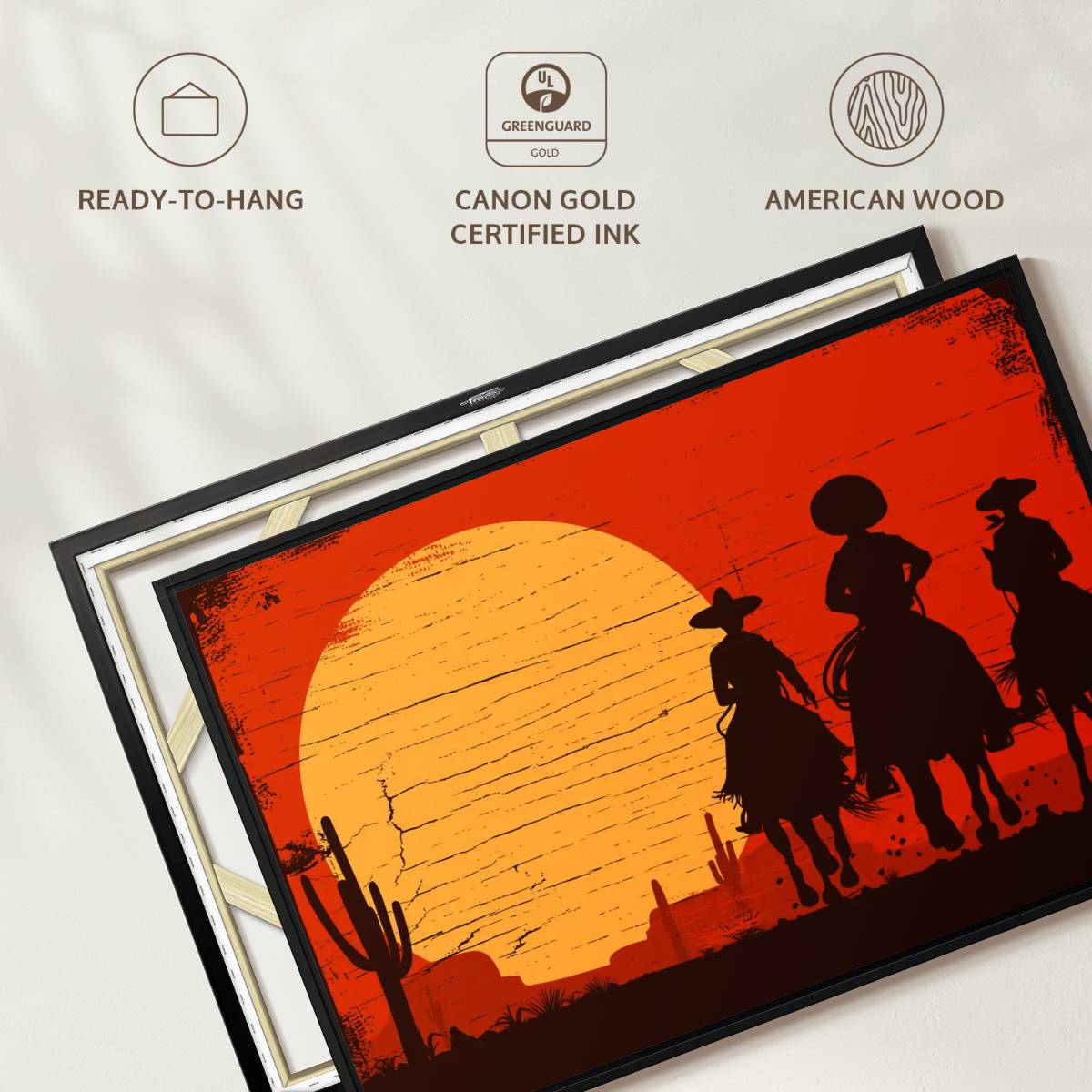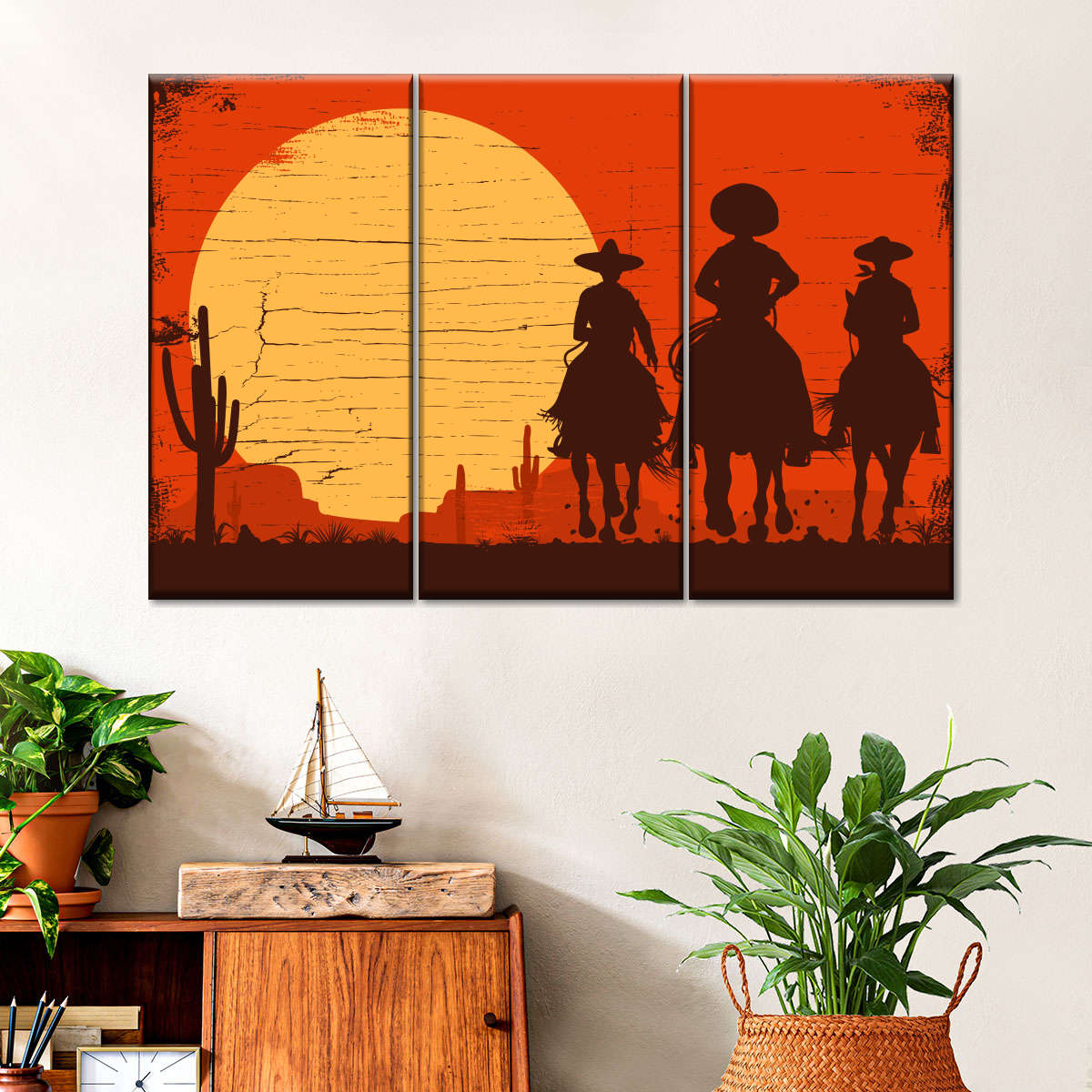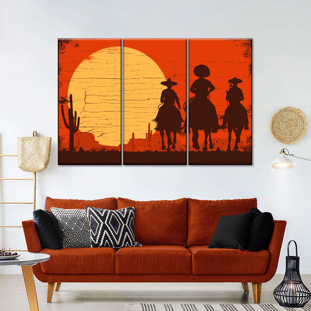 Mexican Cowboys Wall Art adds a western touch of old west authenticity to your walls. This Western canvas print is sure to add character to your space and complement any farmhouse style decor.