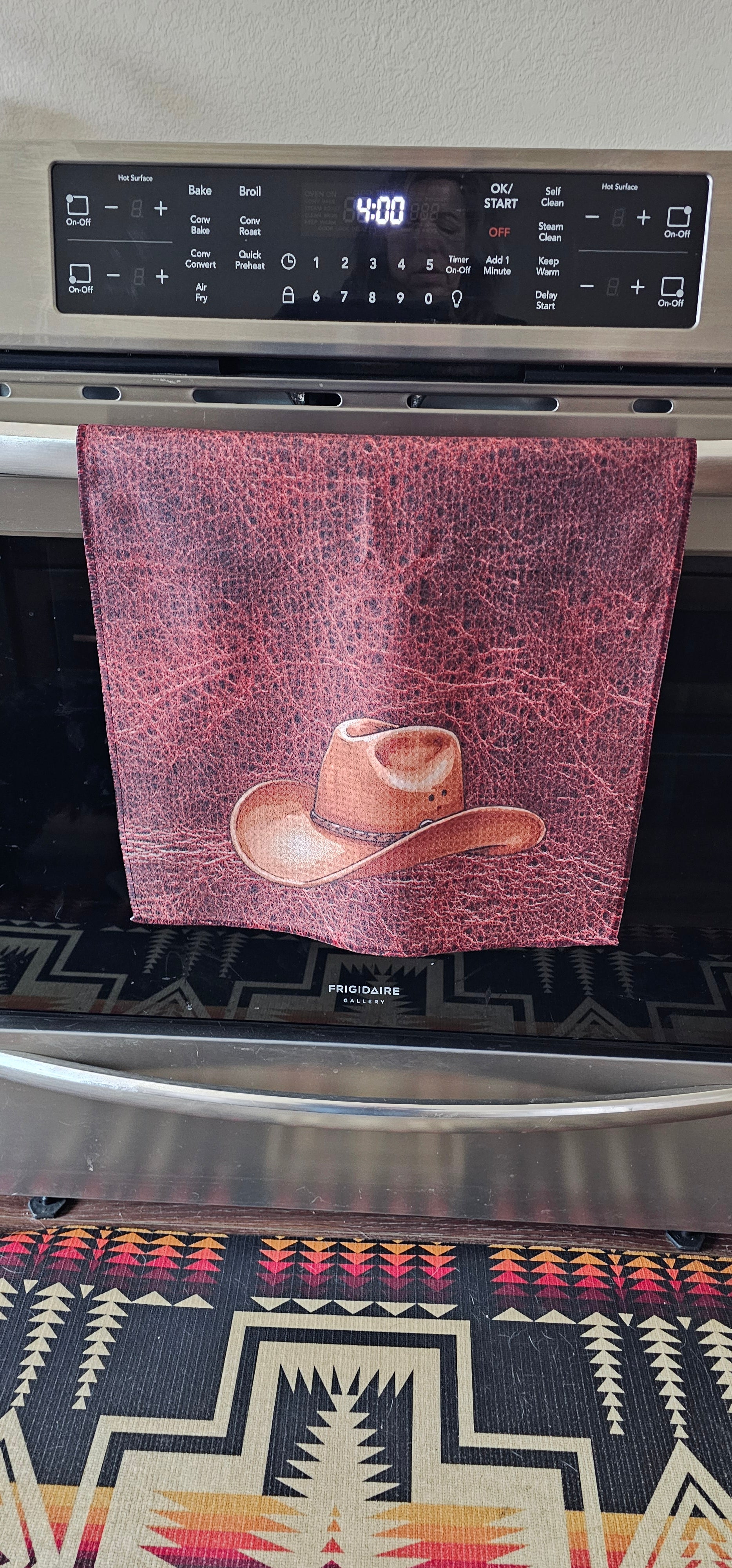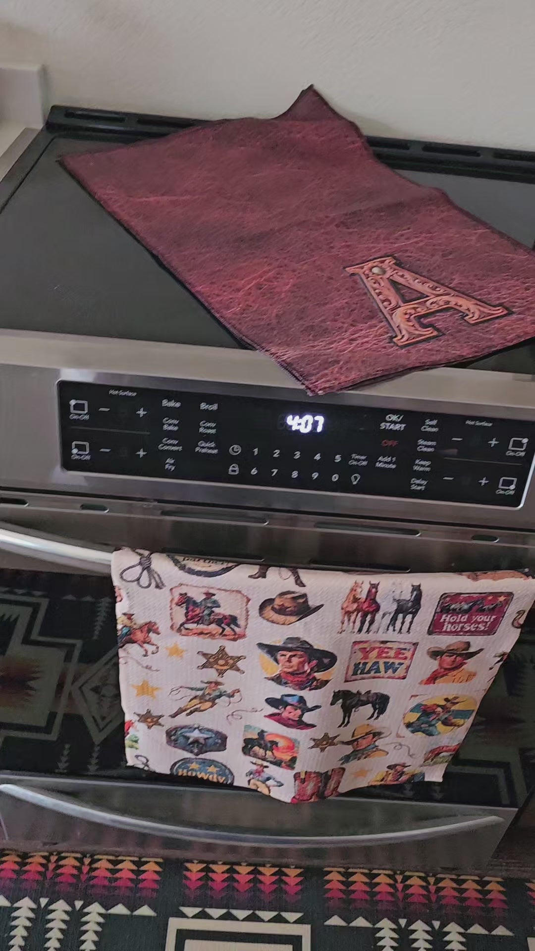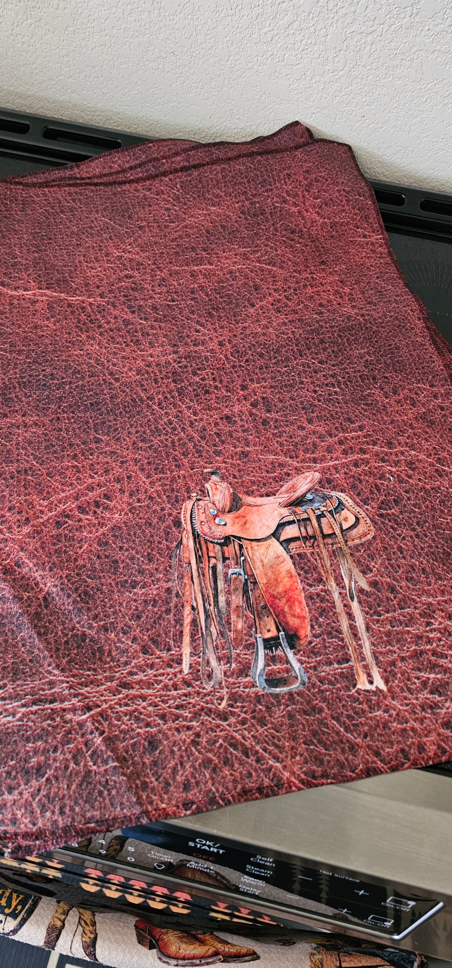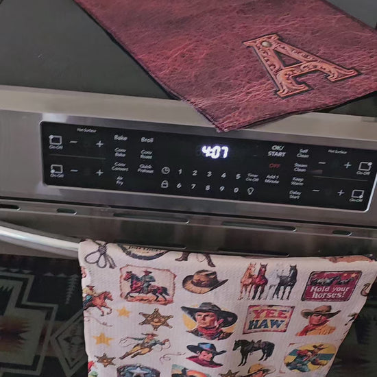 Monogrammed Initial Western Leather Look Saddle Longhorn Cowboy Cowgirl Kitchen Dish Towels Made in America