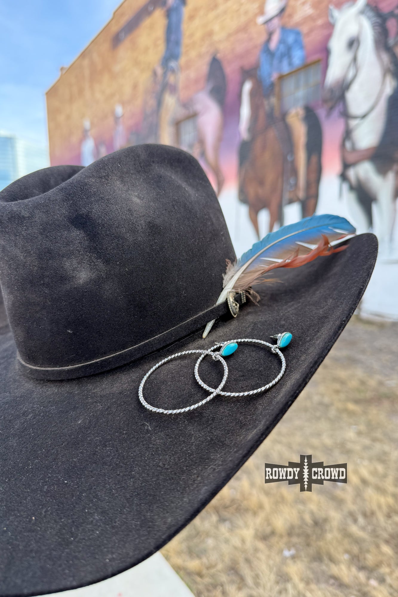 The Monterey Hoops feature a vibrant oval turquoise stone paired with a twisted silver hoop that gives just the right amount of western edge. Designed with a secure post back, they're bold without being heavy and made to move with you from market days to girls’ night.