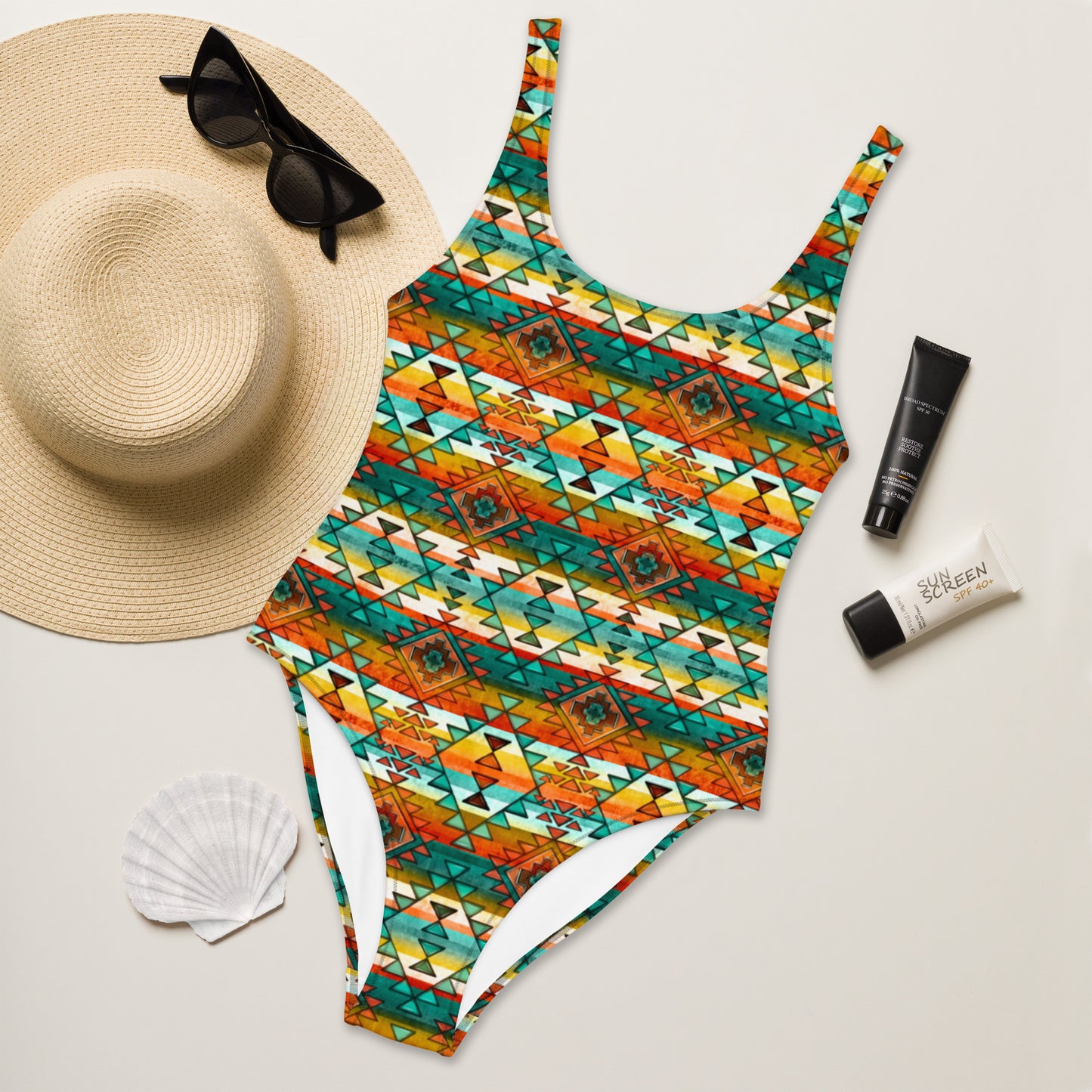 Yeehaw Mustard Aztec One-Piece Swimsuit