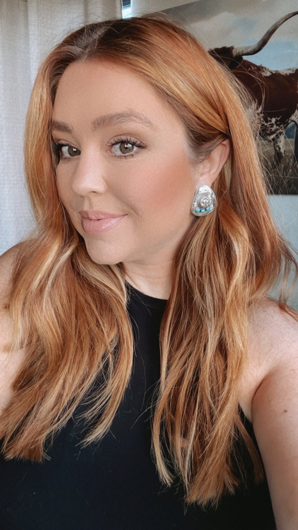 These are handmade Navajo Turquoise & Sterling Silver Cowboy Hat Earrings. The size of these Earrings are just under 1 1/2 inches in length and just over 1 inch in width. They are a great size and the perfect every day earring. Signed by the artist and stamped sterling.