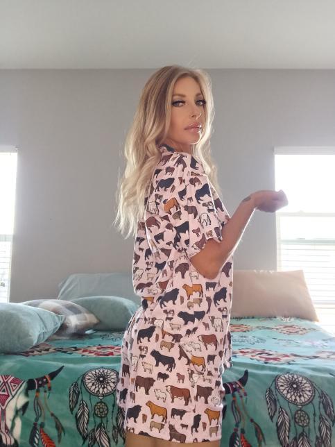 Add a punch of western to your loungewear closet! This fun cattle brands print gives ranchy vibes and is a must have for every cowgirl.