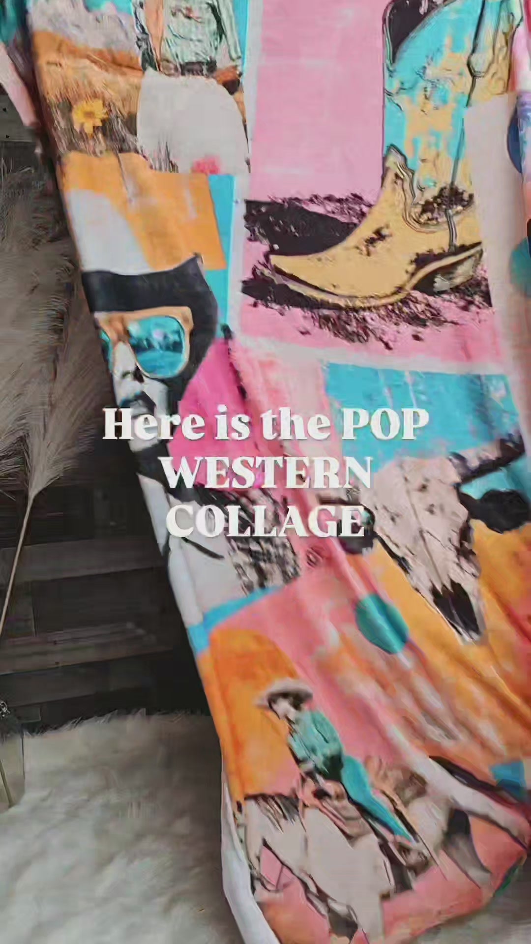 Pop Western Retro Cowgirl Collage Throw Blanket 60" x 80" Made in America