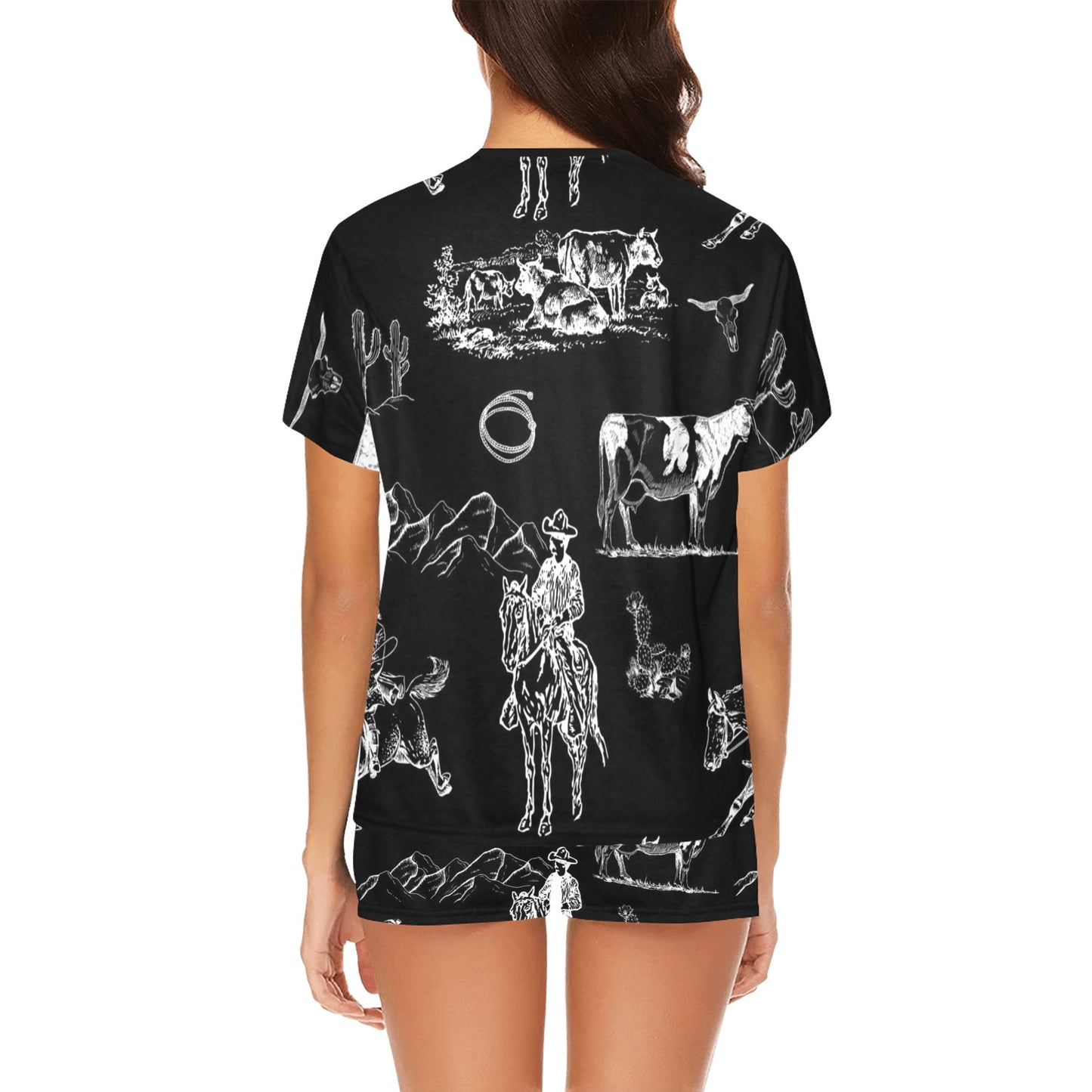 Never worry about sleeping in basic PJs again - this custom designed by Baha Ranch Western Women's Top and Short Pajama Set takes comfort to the next level in style! This fun, western-themed set is perfect for any cowgirl, giving you a cozy and comfy fit perfect for lazing around the house or catching those zzzs. Yee-haw!