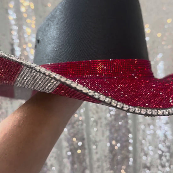 Rhinestone Cowgirl The "America" Hat in Black - Red Rhinestones on Top
