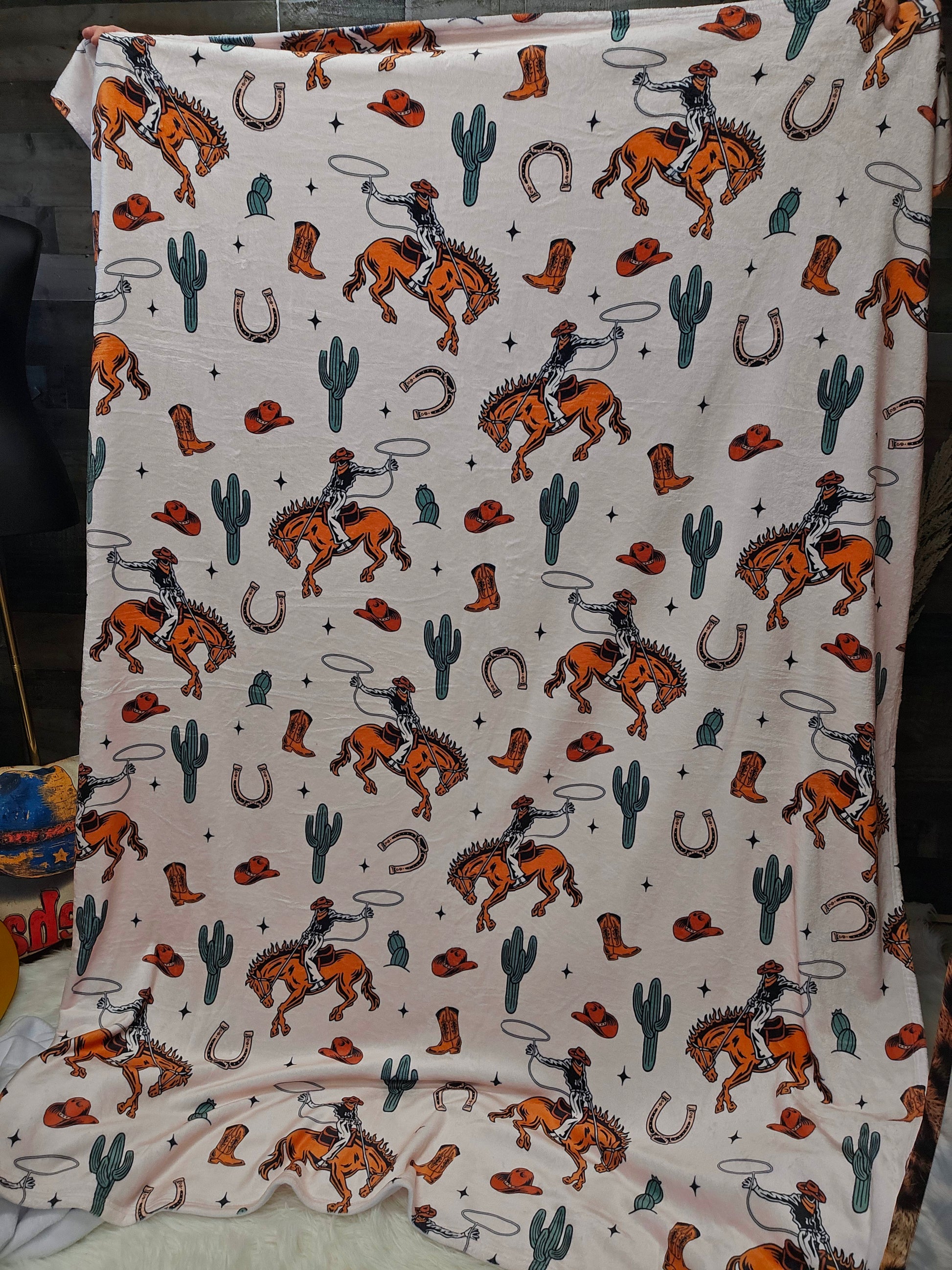 Rodeo Cowboy Throw Blanket Ultra-Soft Micro Fleece Blanket 60" x 80" Made in America