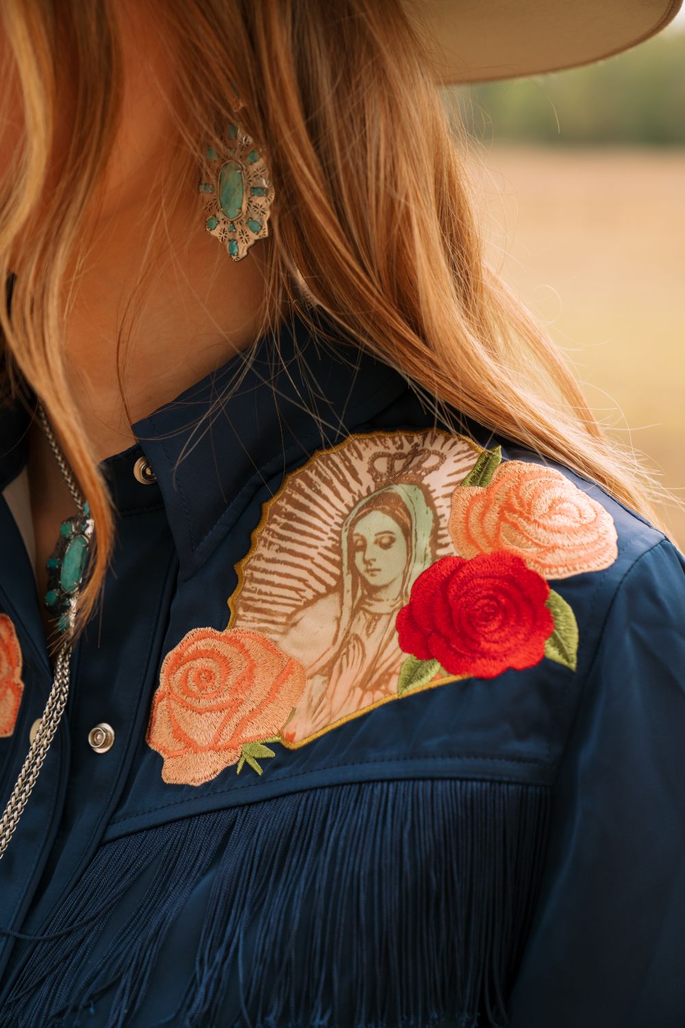 Timeless and effortlessly cool, the Dark Navy Button Up is a wardrobe staple for every cowgirl. Its rich navy hue and classic design make it perfect for layering, dressing up for a night out, or keeping it casual with your favorite denim.