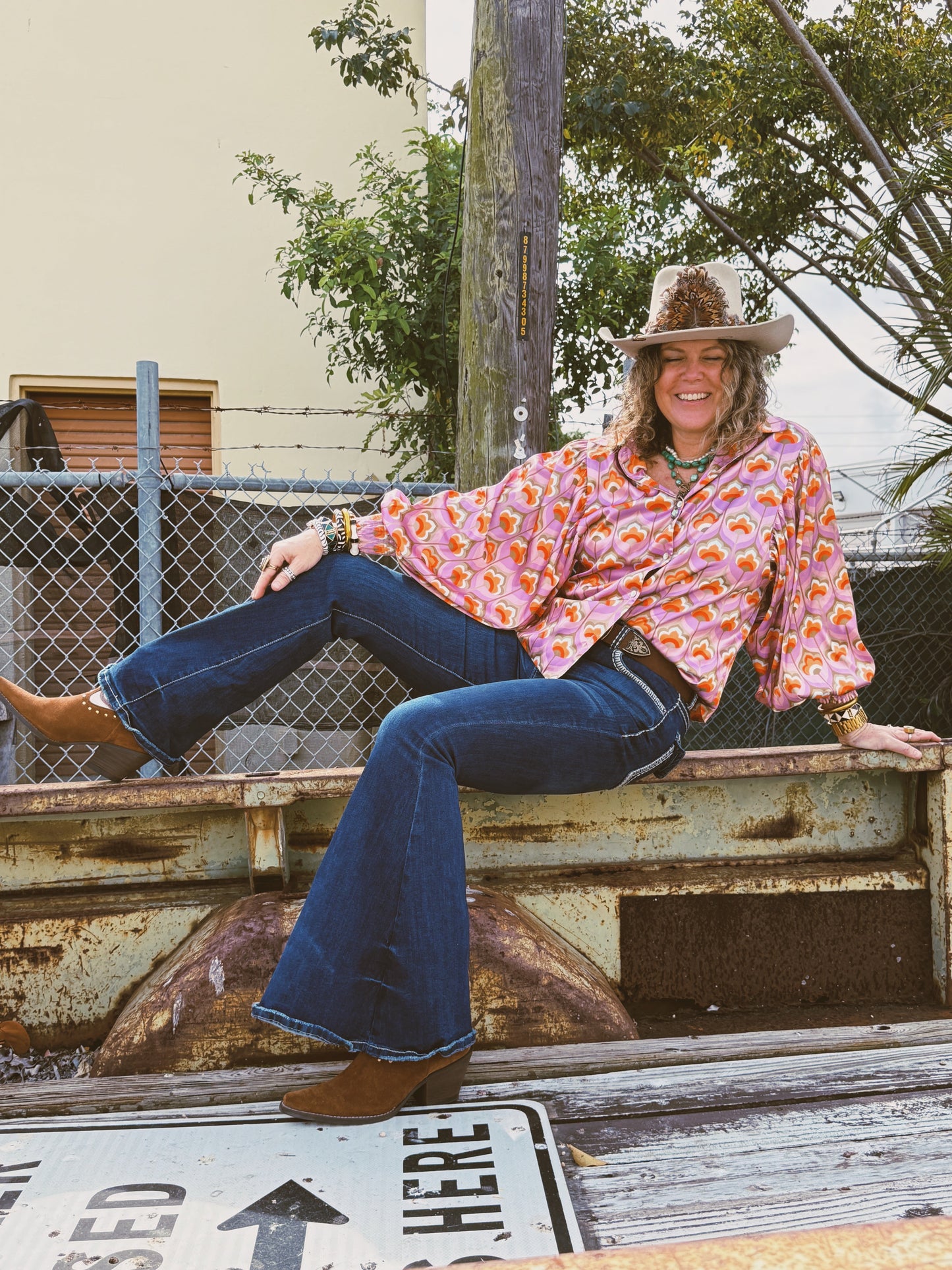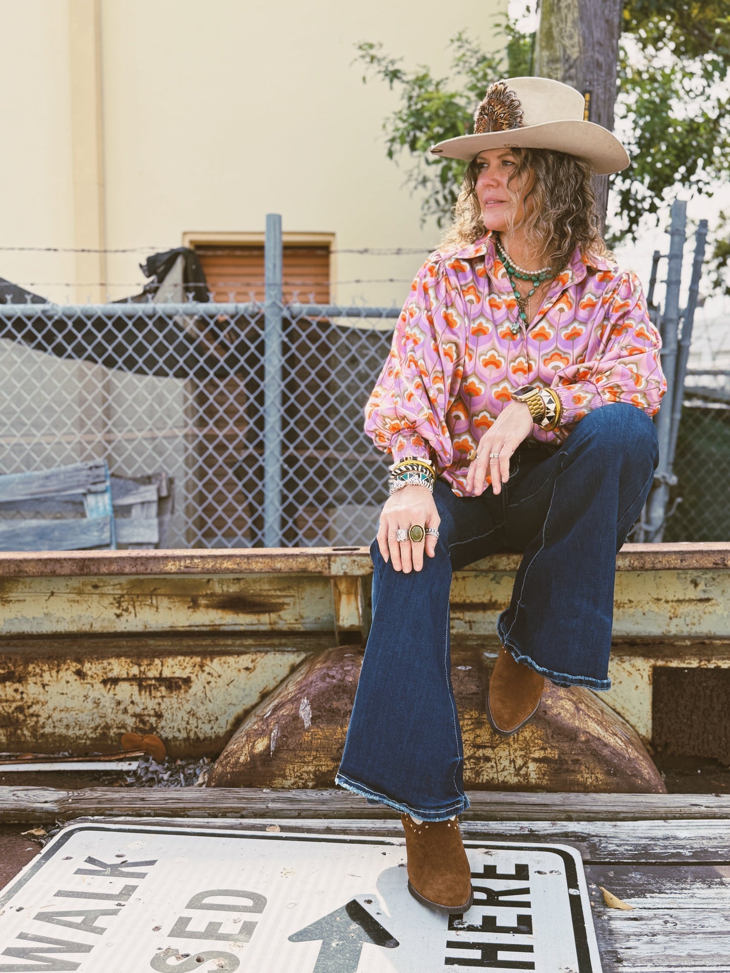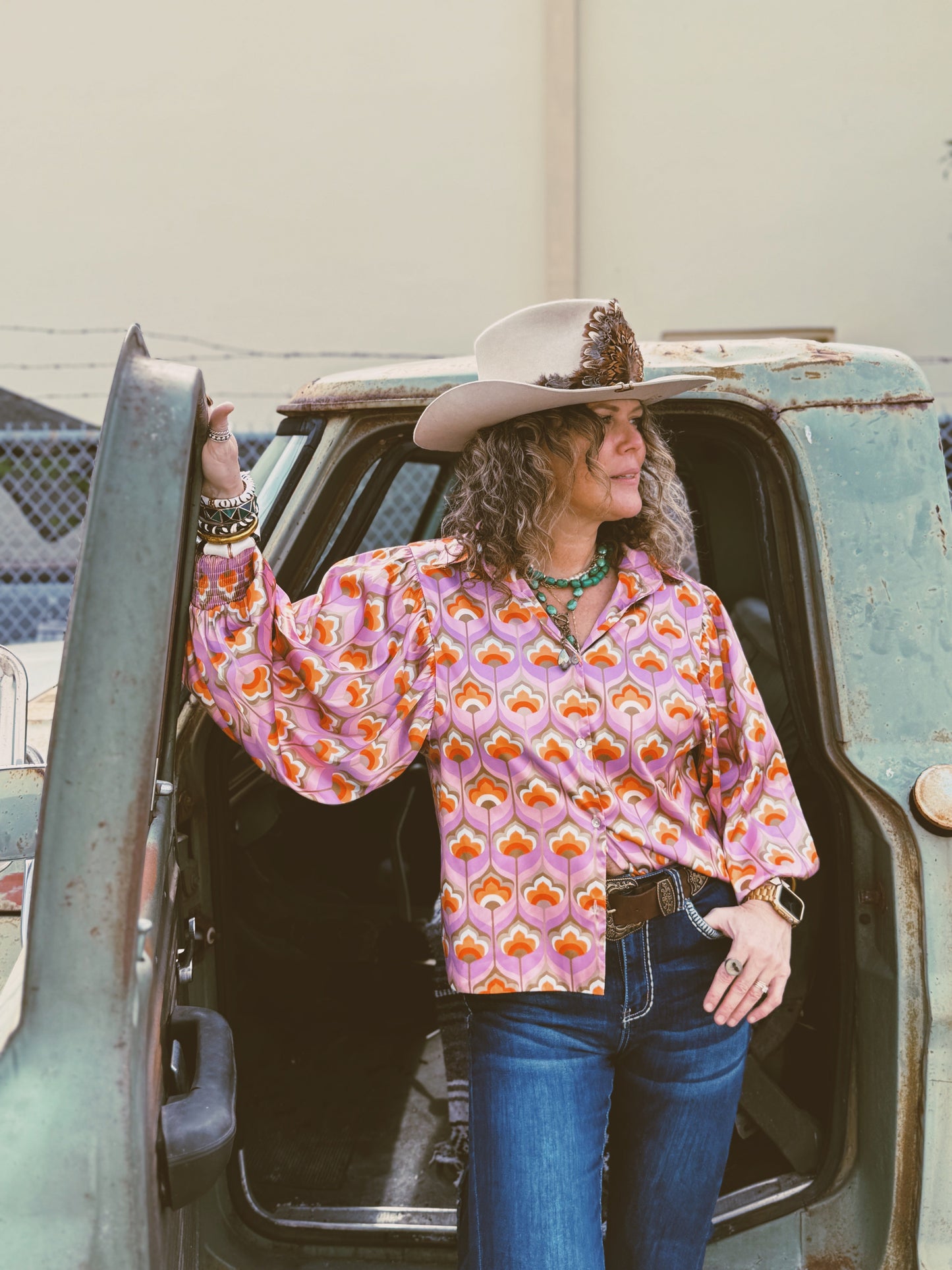- Room At The Top Balloon Sleeve Button Up Blouse