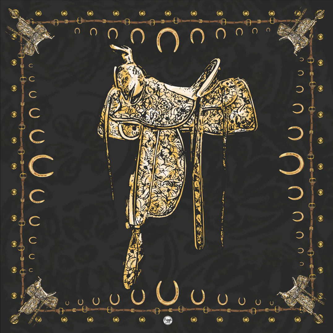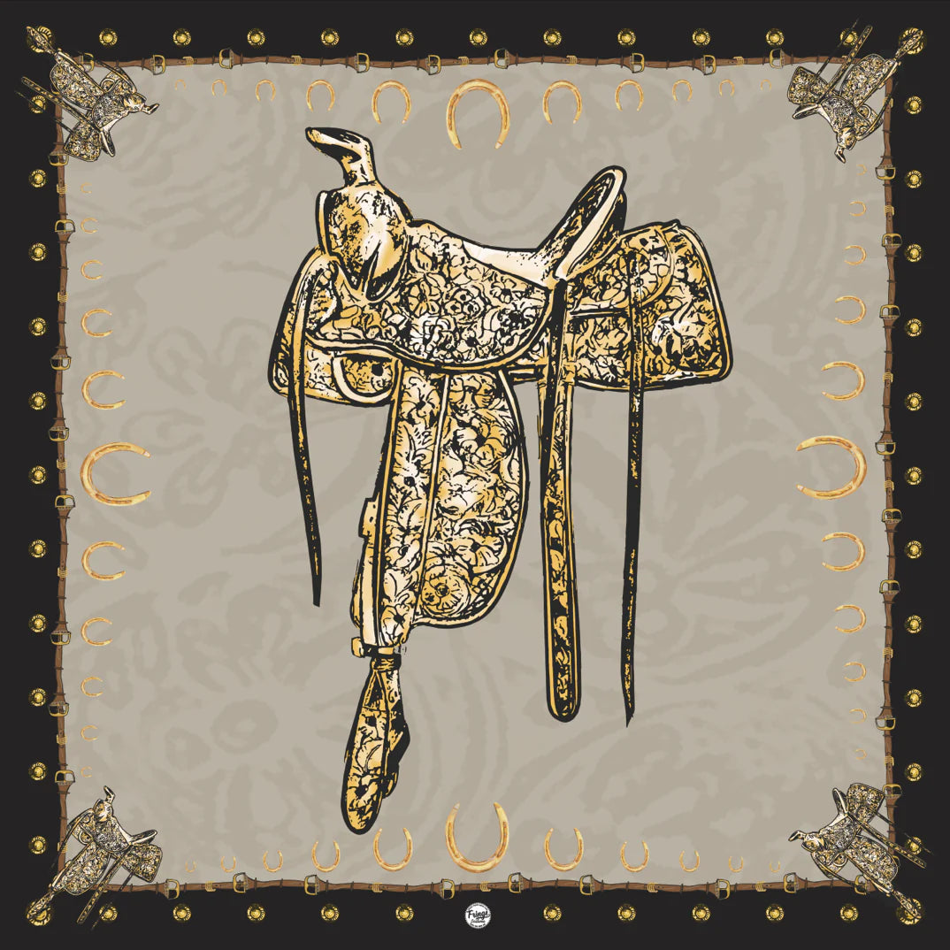 The Saddle Up has that classic Western feel with gold and browns that lend themself to either a dressed up or dressed down look. The rich colors in this vintage saddle design, pair great with leather or your favorite blazer. Designed by owner, Jodi Hendrickson, saddle by Ron Bonge.