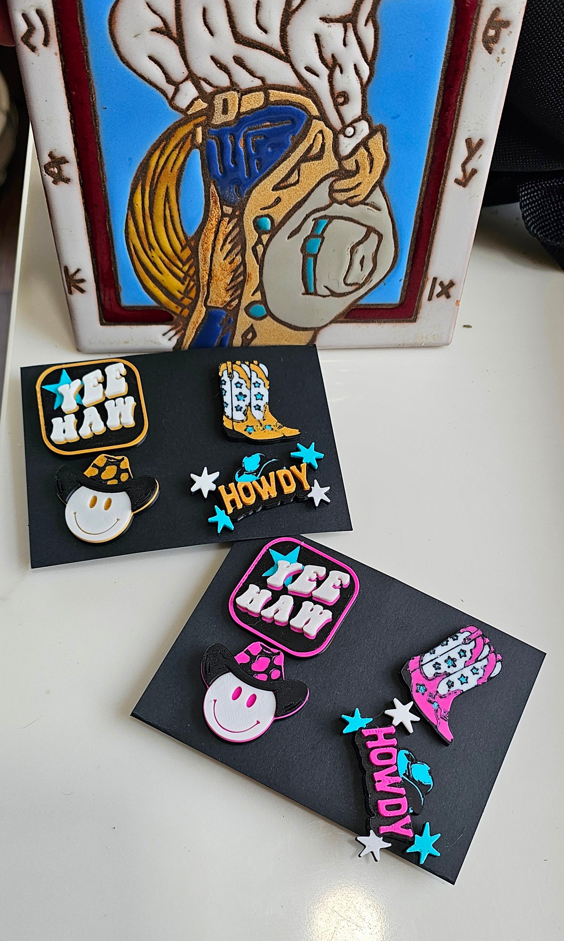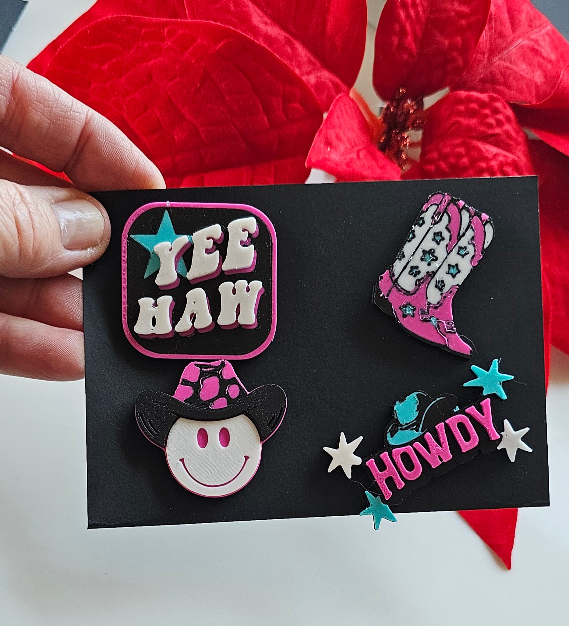 Set of 4 3D Print Western Cowboy Yeehaw Howdy Hat Pins Made in America choice of colors
