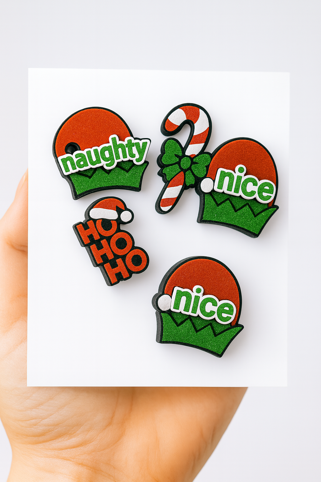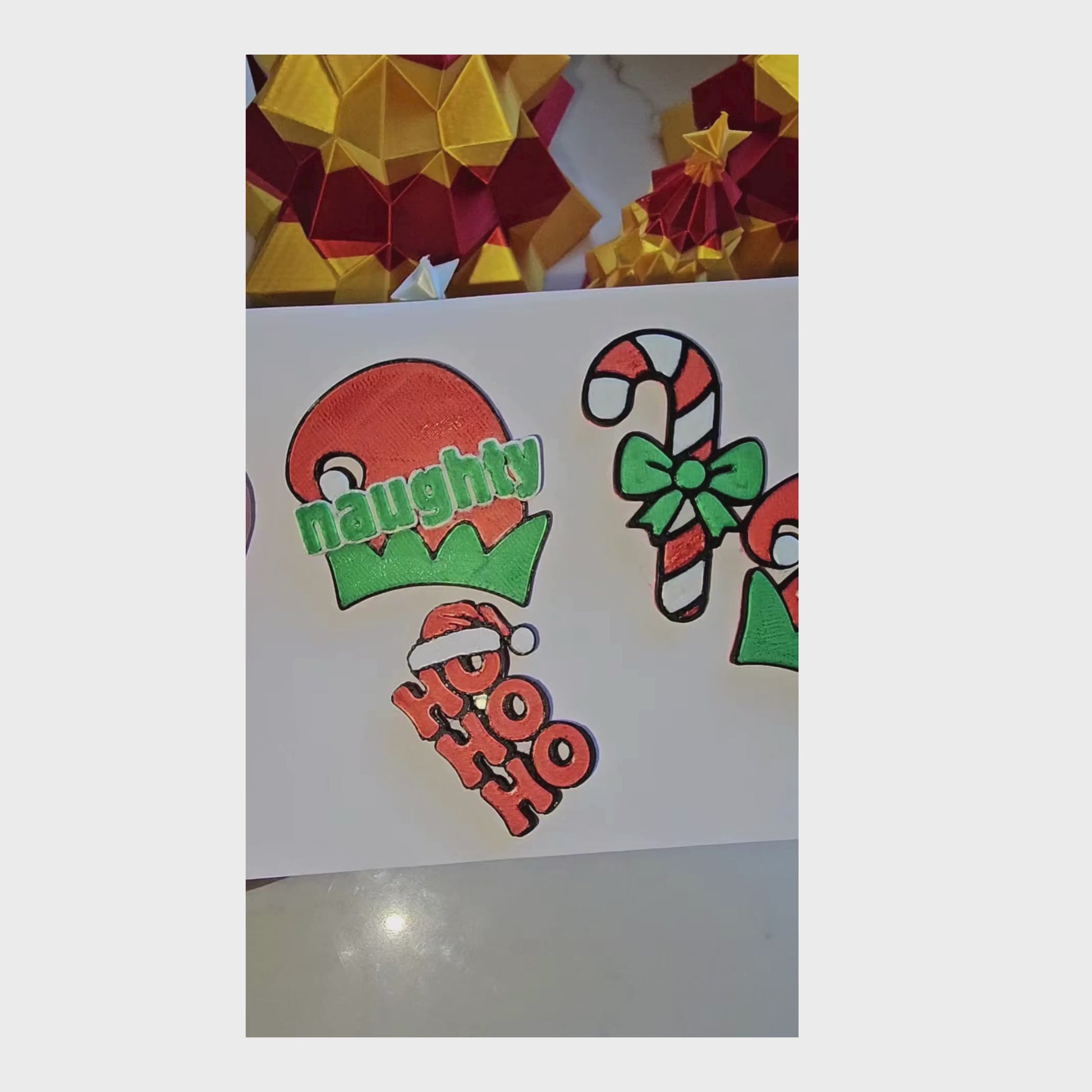 set of 4 Naughty Nice Candy Cane HOHOHO Hat Pins Christmas