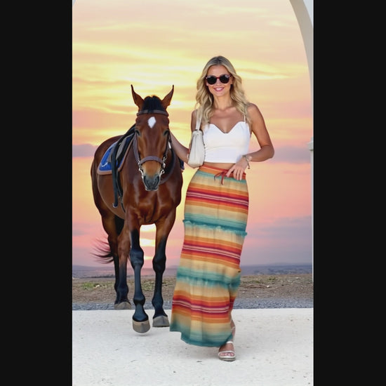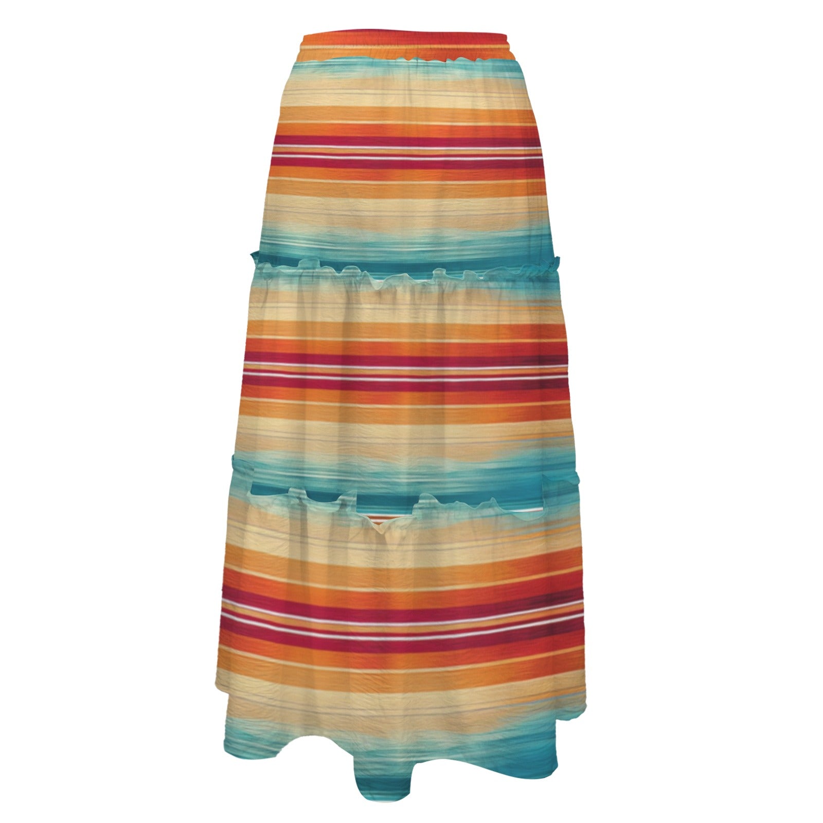 Colores De Mexico Southwest Serape Tiered Prairie Maxi Skirt