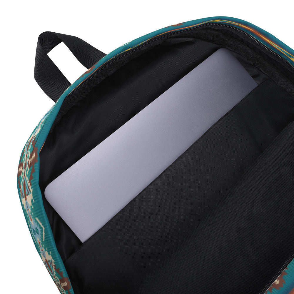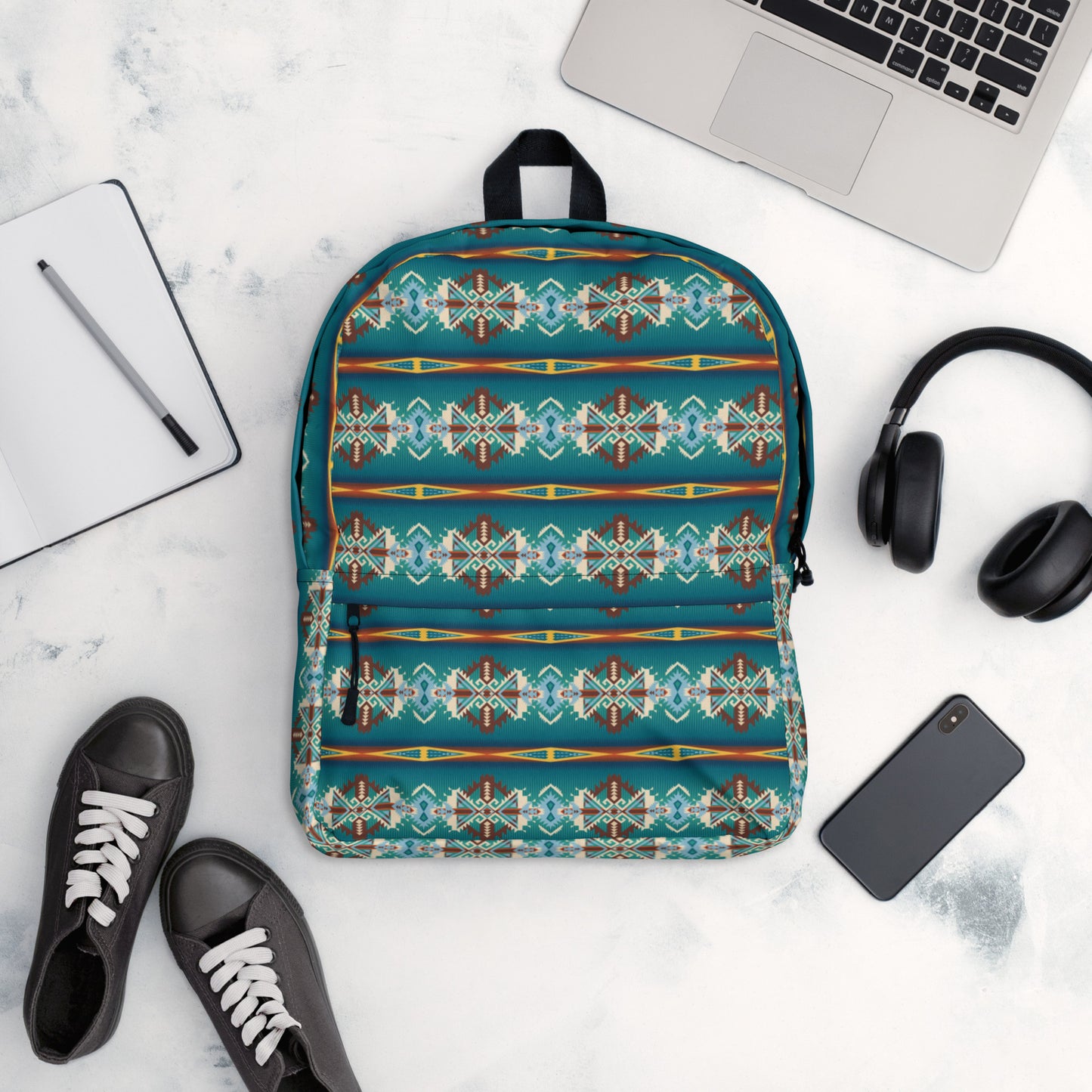 This medium size backpack has plenty of room with a big inner pocket, separate section for a 15'' laptop, front pocket, and a hidden pocket at the back for valuables. The bag is made out of a water-resistant material, which means your all-over print designs will stay crisp and fresh no matter the weather!