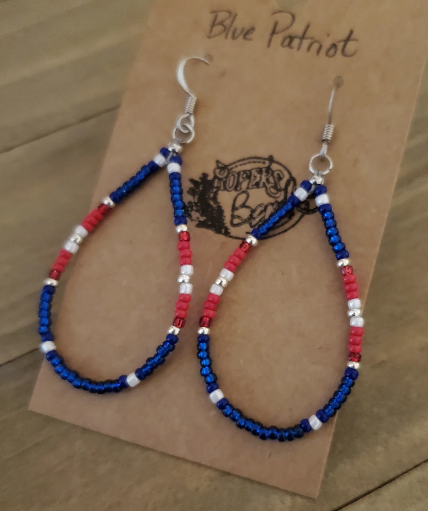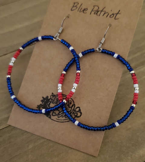 Declare your patriotism with The Blue Patriot Collection - bold, hand-beaded jewelry featuring the iconic American colors of red, white, and blue. Show off your unique style while proudly displaying your love for your country. Express your American pride in a fun and fashionable way!