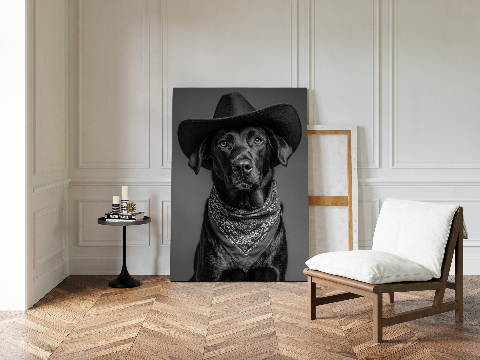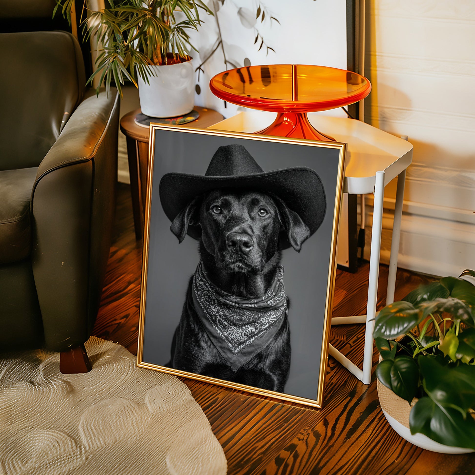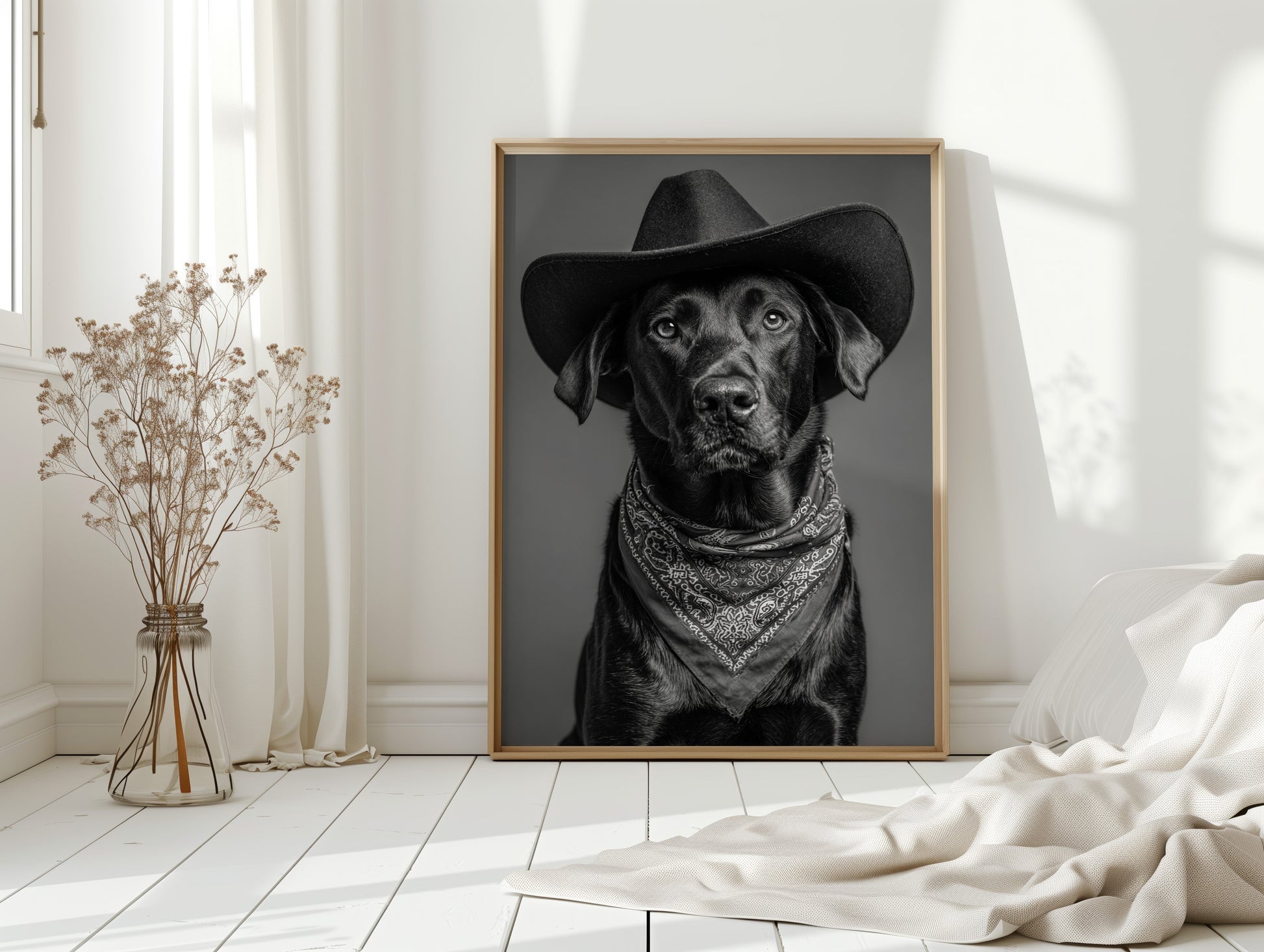 Part of our Barnyard Heroes collection, this charming black and white portrait captures the whimsical spirit of Western life with genuine artistic flair. The dramatic lighting and serious expression create a composition that's both laugh-out-loud funny and surprisingly sophisticated, proving that the best art often comes from the most unexpected places.