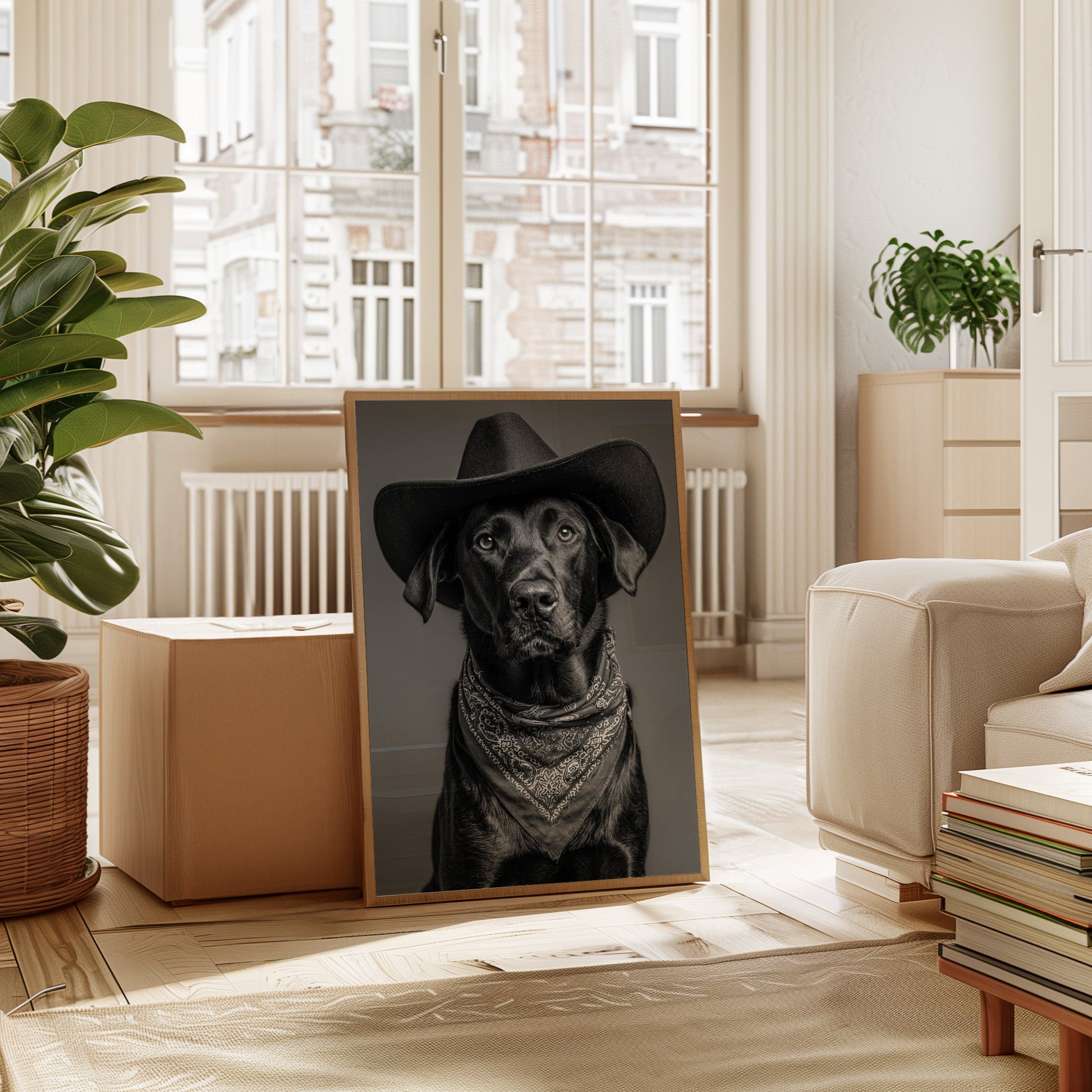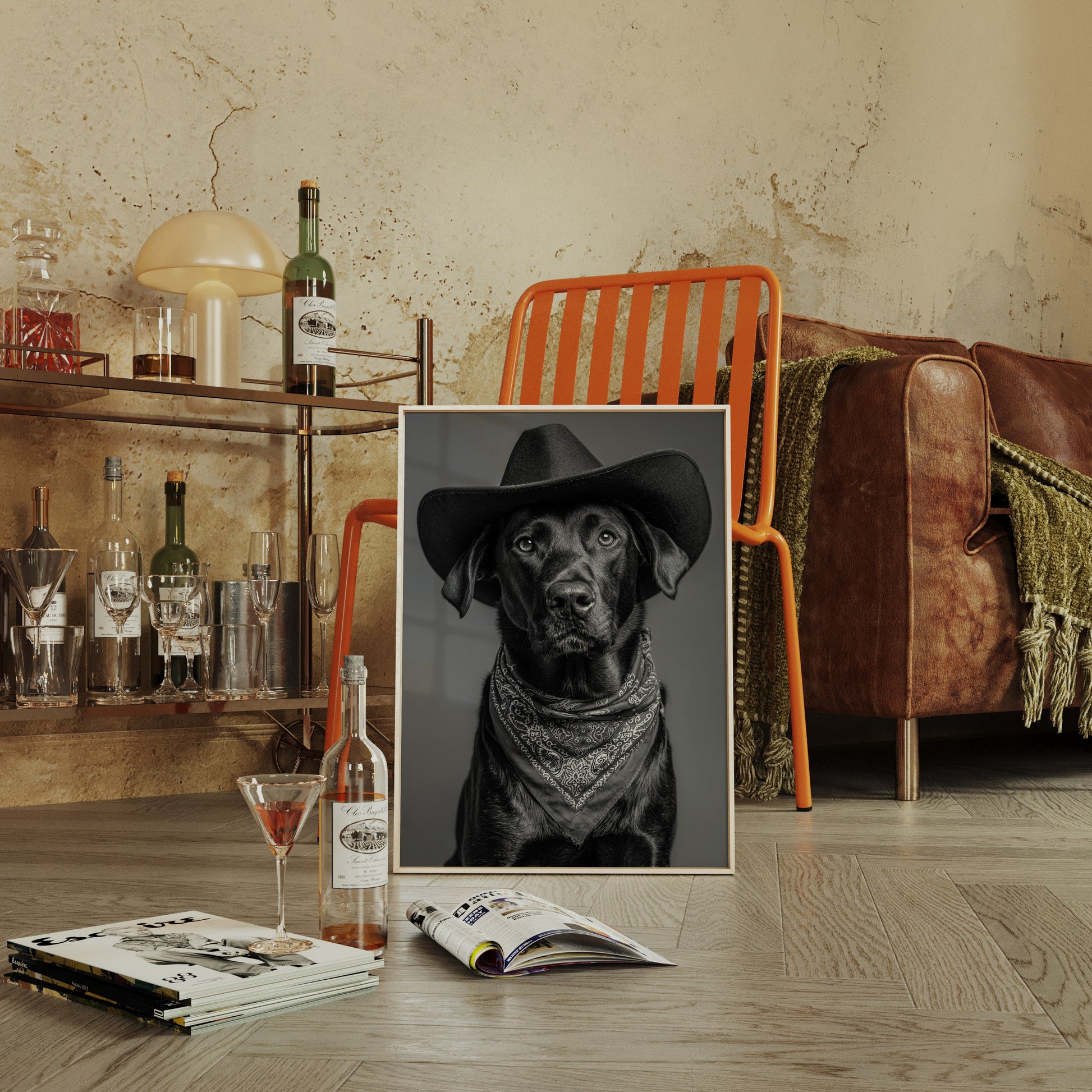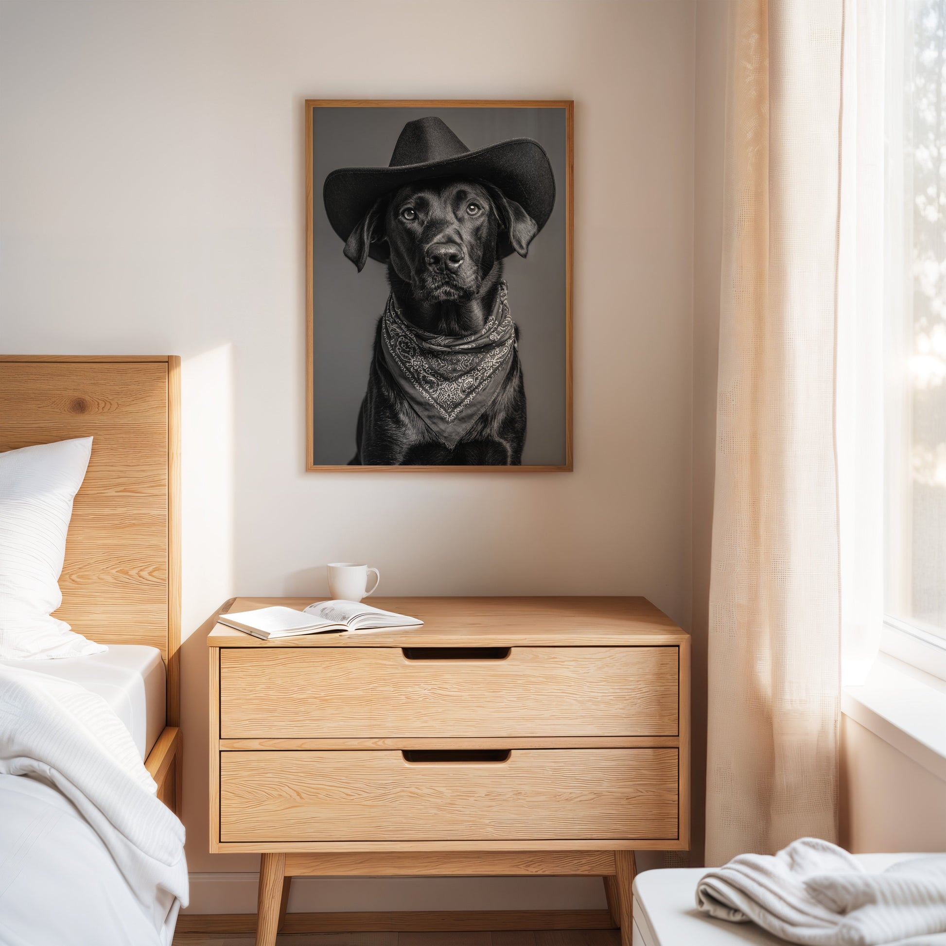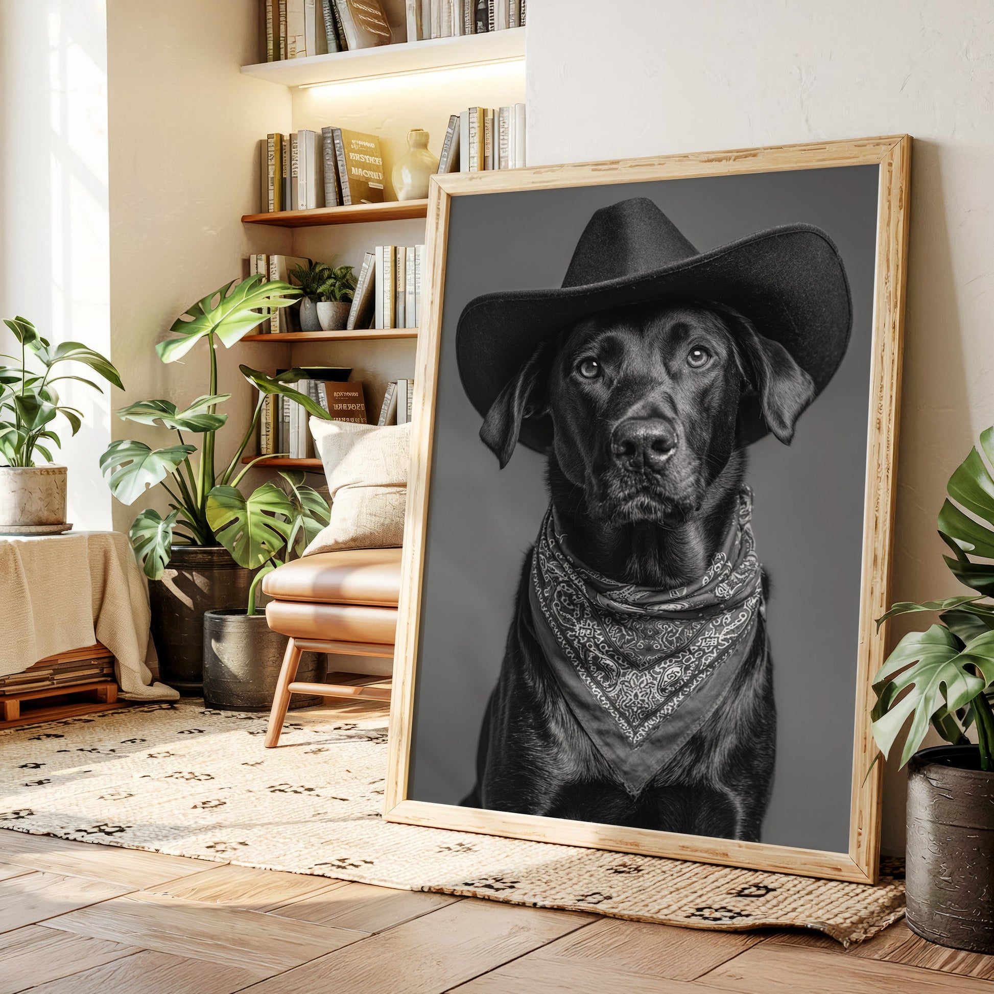 Part of our Barnyard Heroes collection, this charming black and white portrait captures the whimsical spirit of Western life with genuine artistic flair. The dramatic lighting and serious expression create a composition that's both laugh-out-loud funny and surprisingly sophisticated, proving that the best art often comes from the most unexpected places.