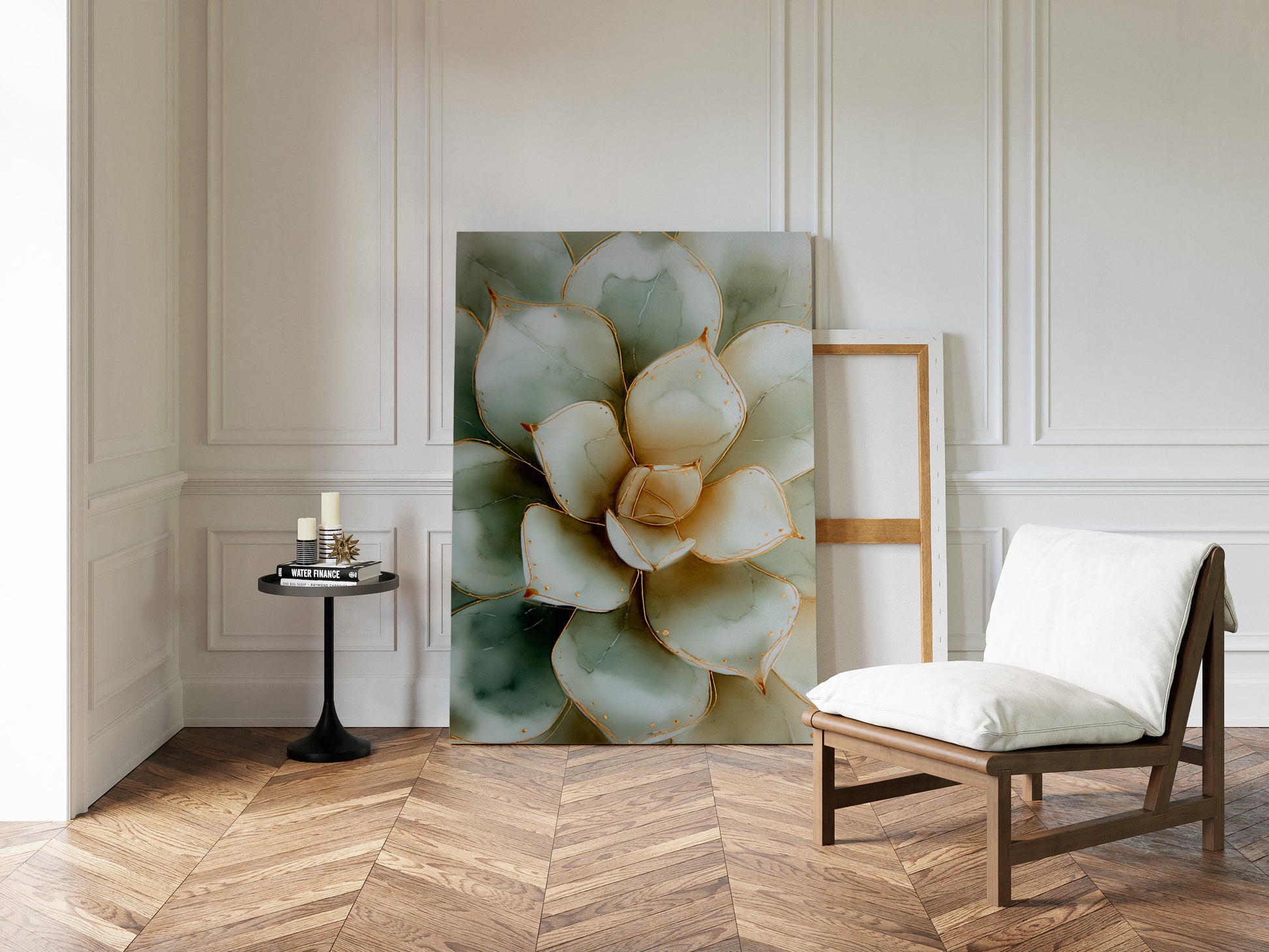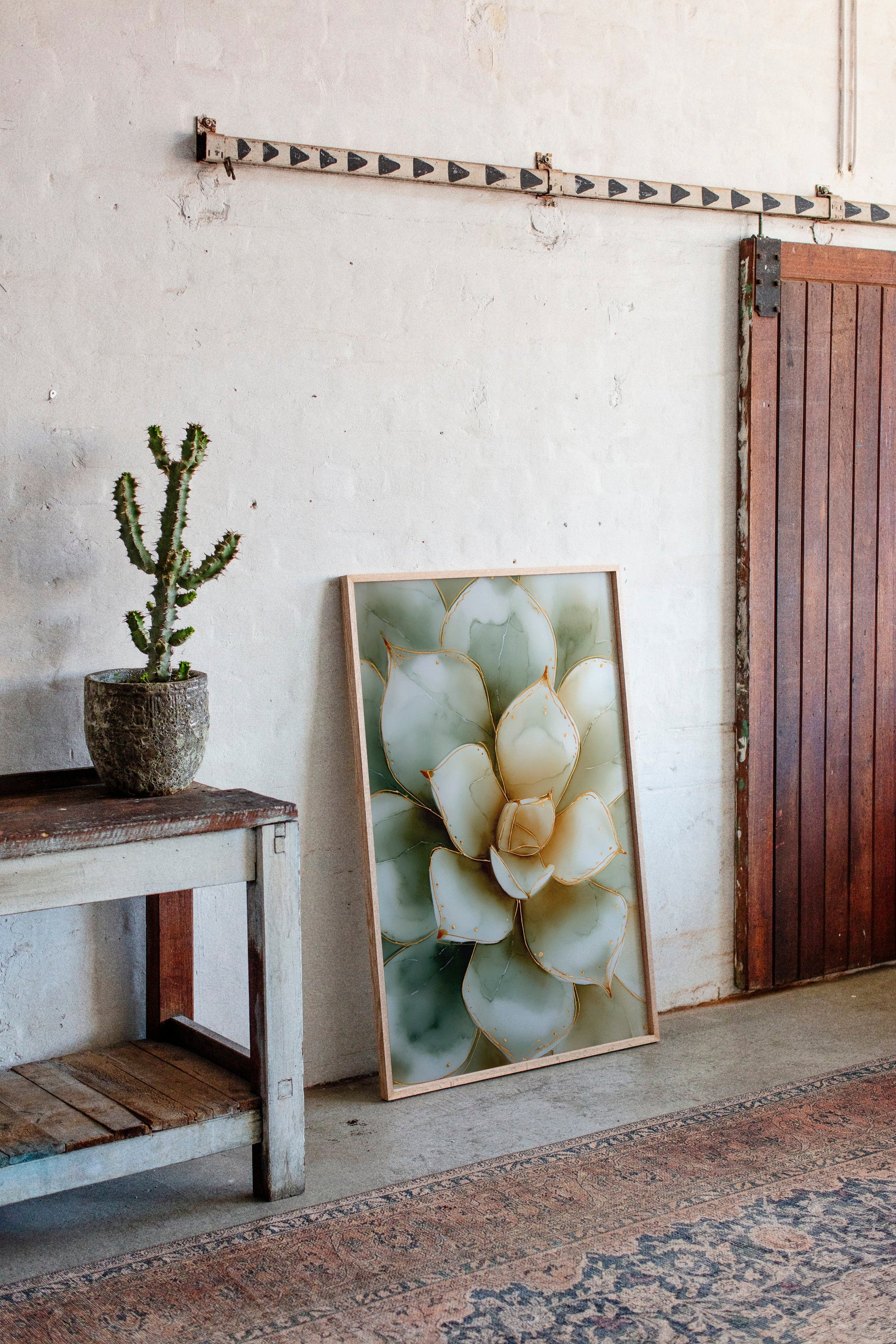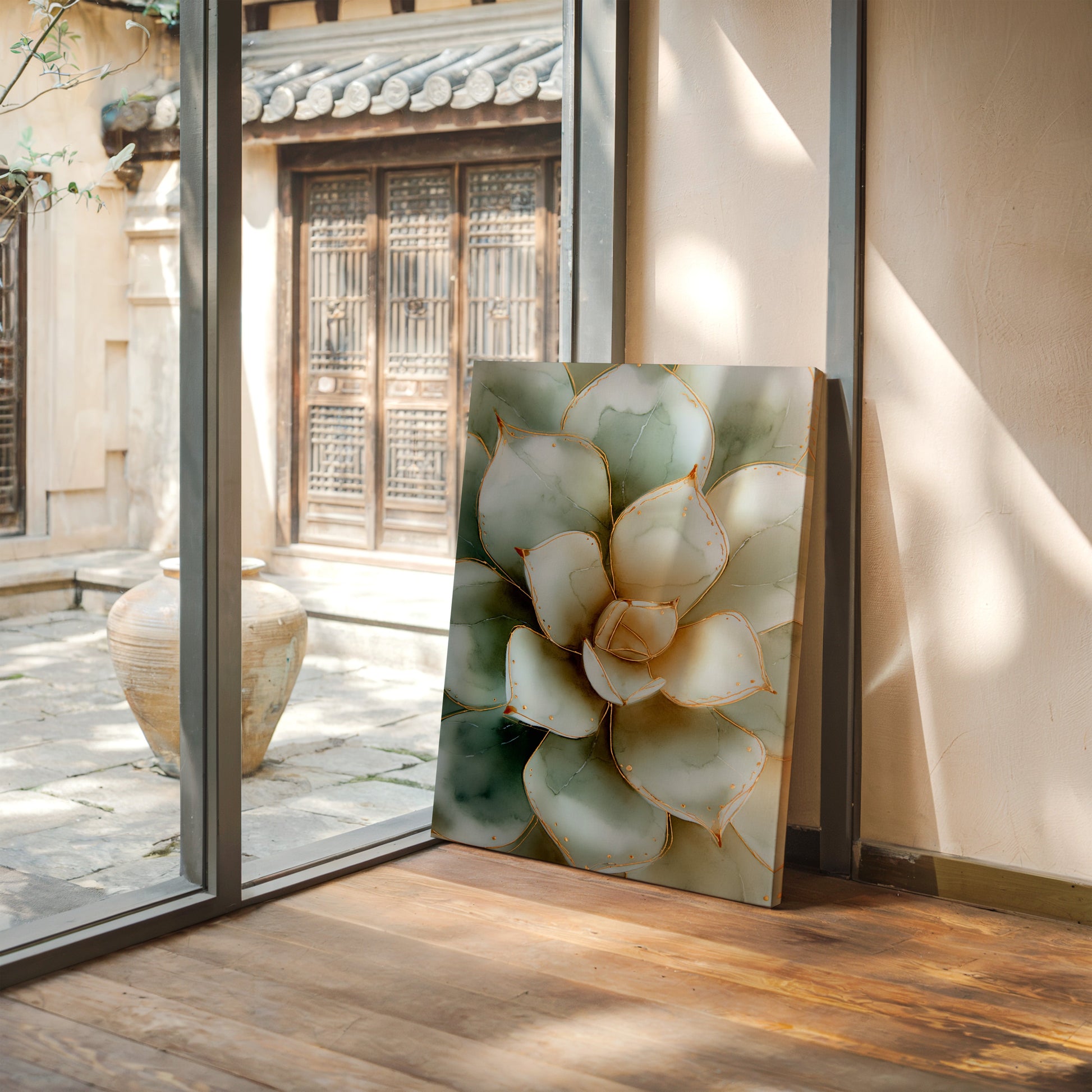 Amidst the hustle of modern life, nature whispers its quiet elegance through the serene beauty of a single succulent. This canvas transports you to a tranquil garden where simplicity reigns supreme.