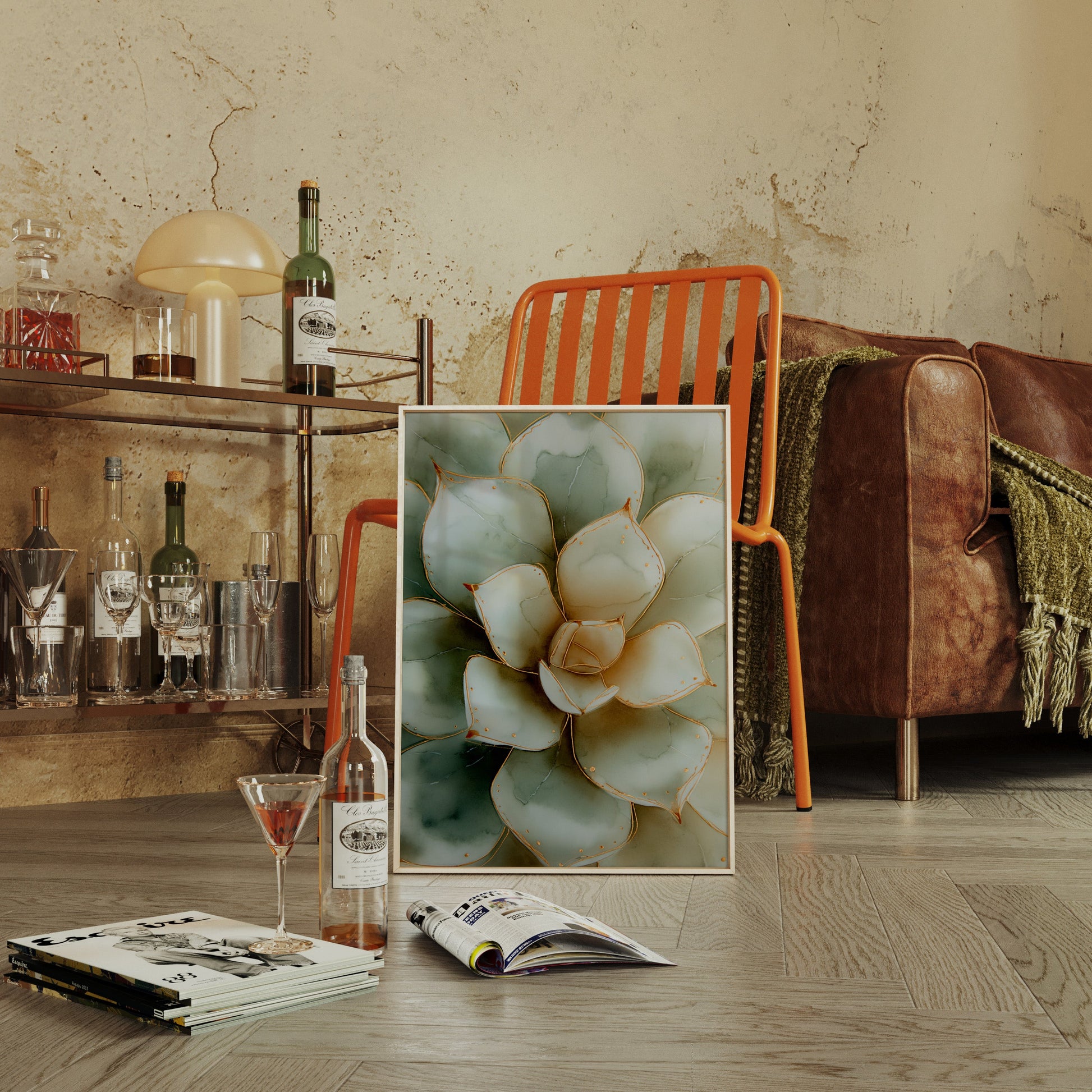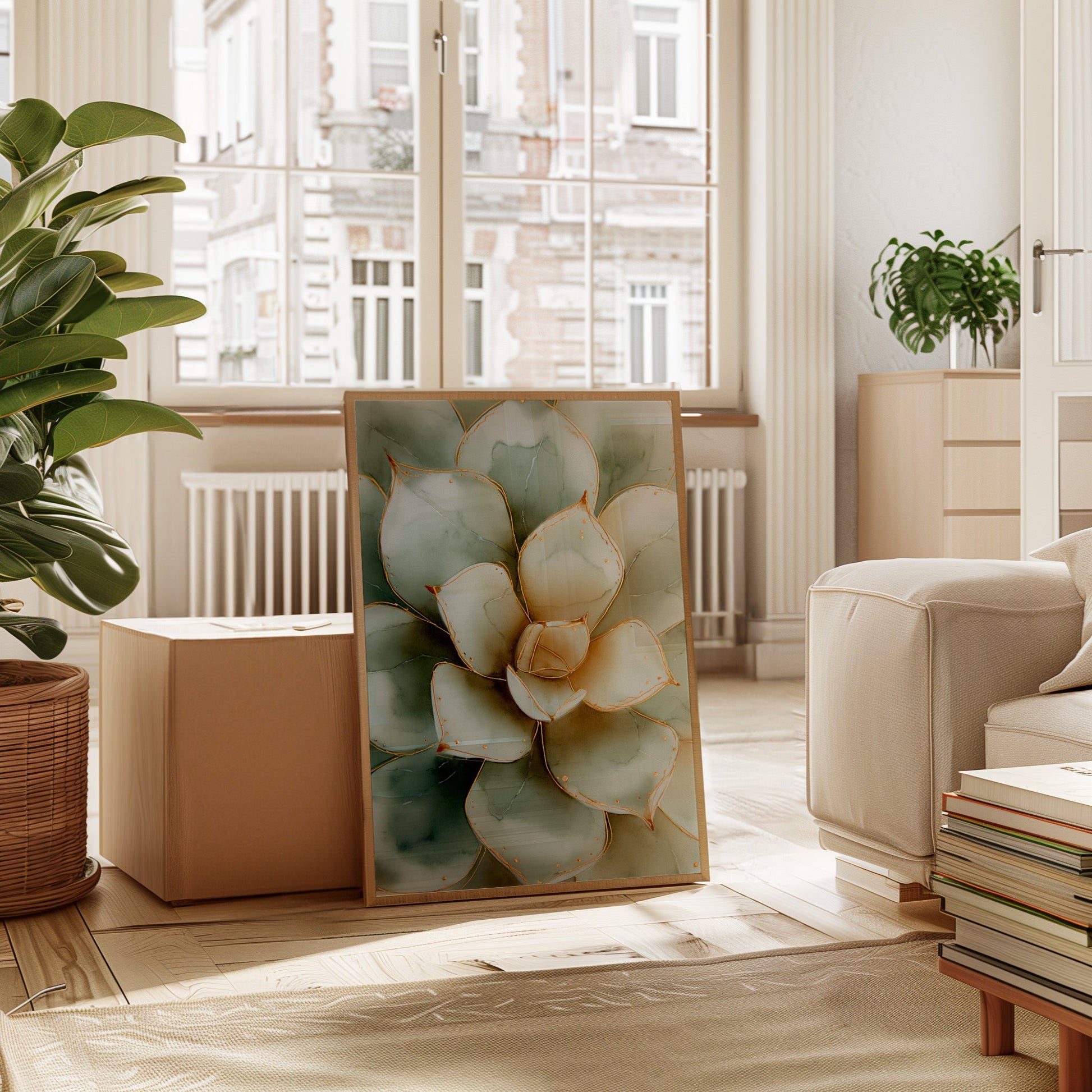 Inspired by the gentle curves and calming hues of succulents, this artwork embodies the minimalist philosophy of finding beauty in simplicity. Each leaf, carefully crafted with subtle gradients, reflects a dedication to capturing nature's purest form.