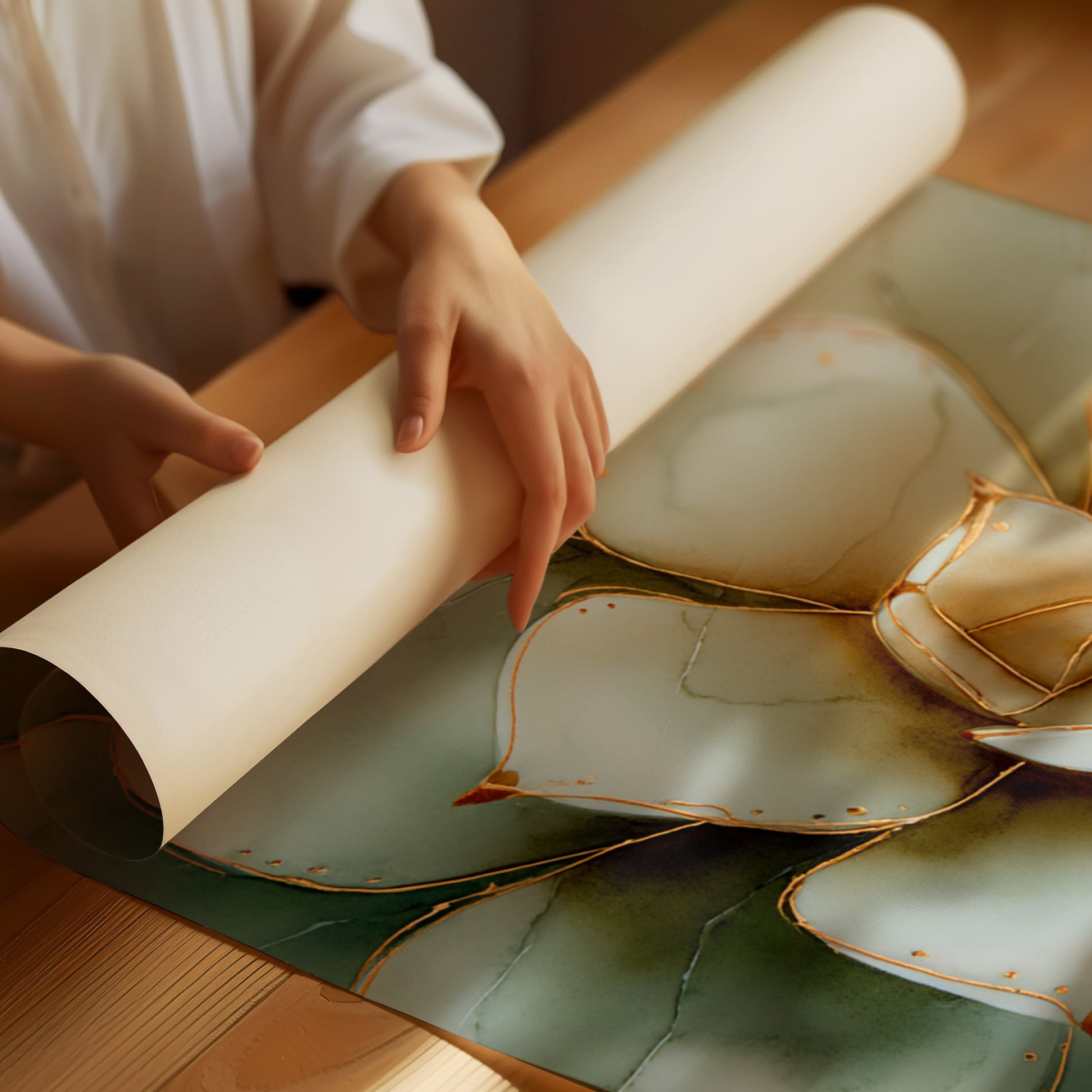 • Intricate detailing with soft green hues