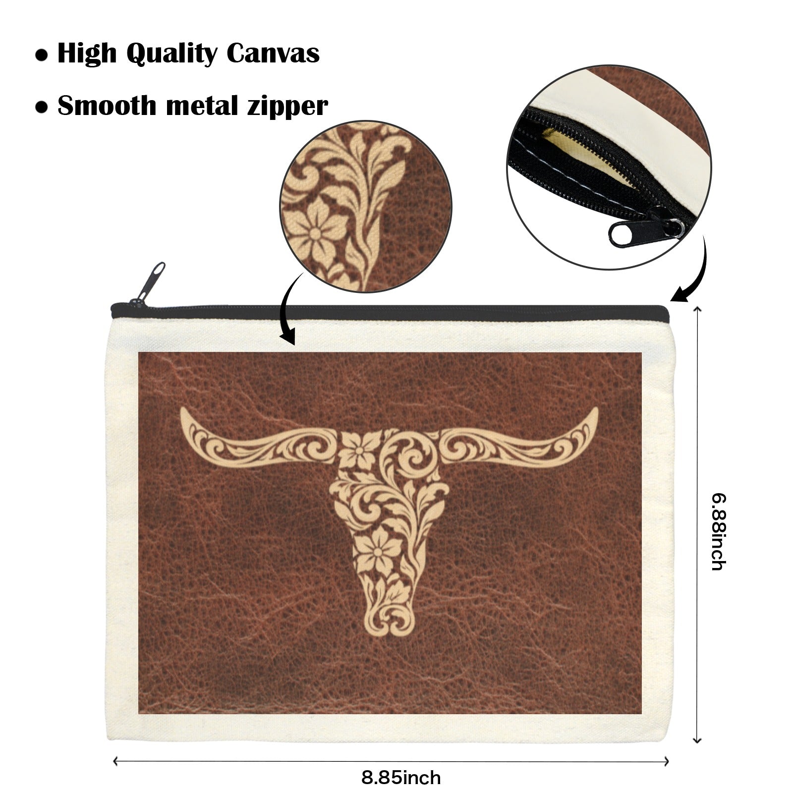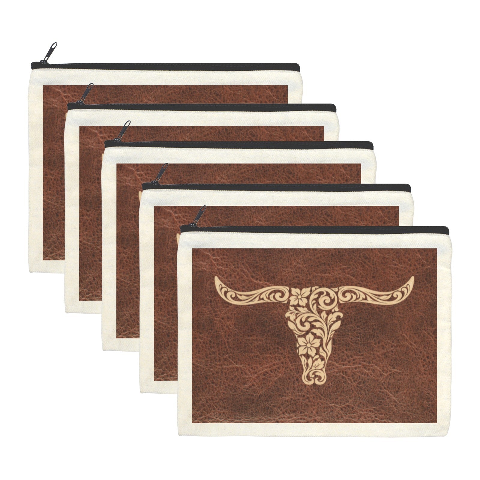 Tooled Longhorn Set of 5 bags Cosmetic Bag Made in America
