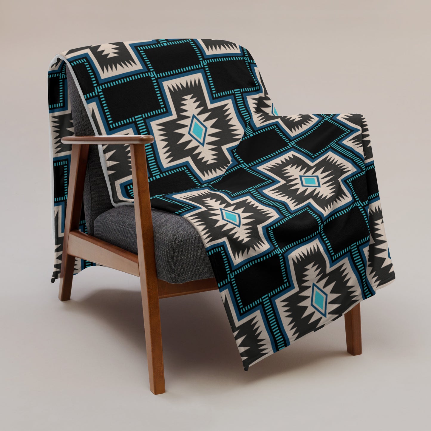 Turquoise Aztec Cross Throw Blanket 60" x 80"
