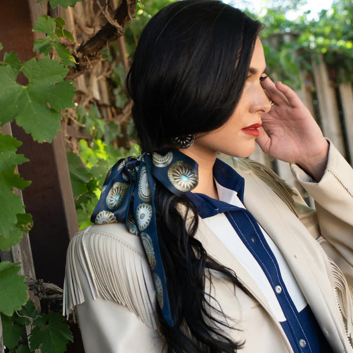 The Big Concho Twilly is the latest addition to our line up scarves. Simple and easy to incorporate into any outfit.... from adding to your neckline to wrapping around your wrist several times along with some silver cuff bracelets. And don't forget adding a Fringe Twilly to your favorite purse handle. One of my all time favorite scarves is a Twilly I purchased years ago. A great way to add color for a more minimalist look!