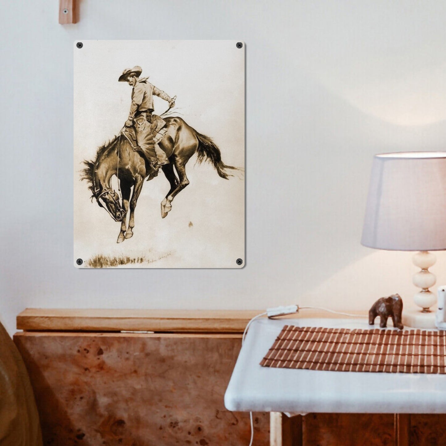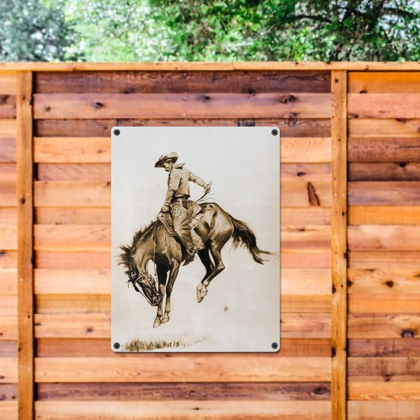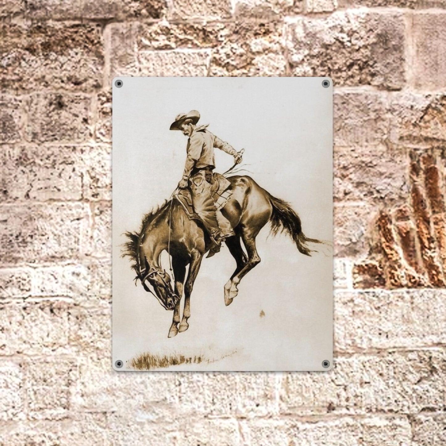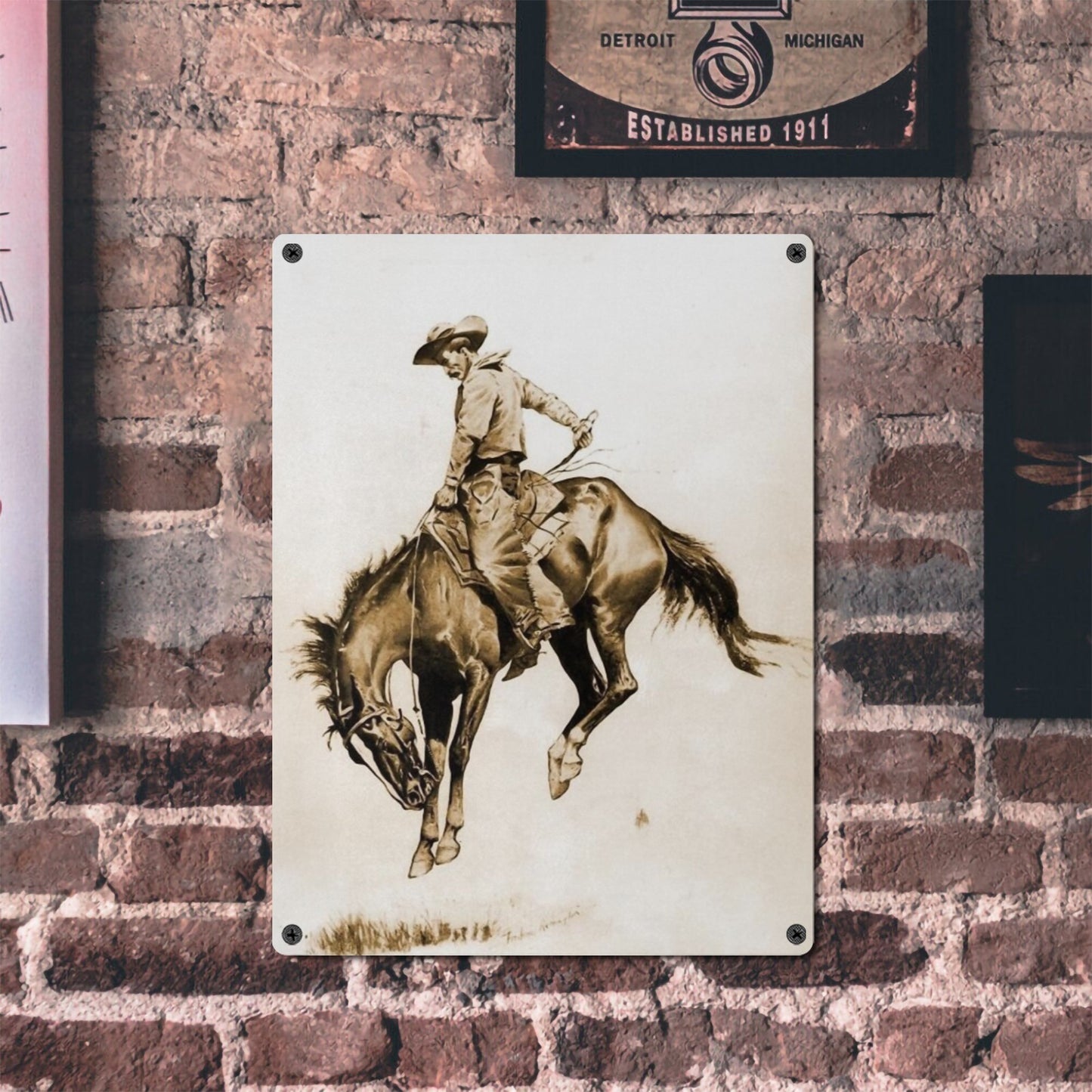 Vintage Bronc Rider Metal Sign 12"x16" (Made in USA)