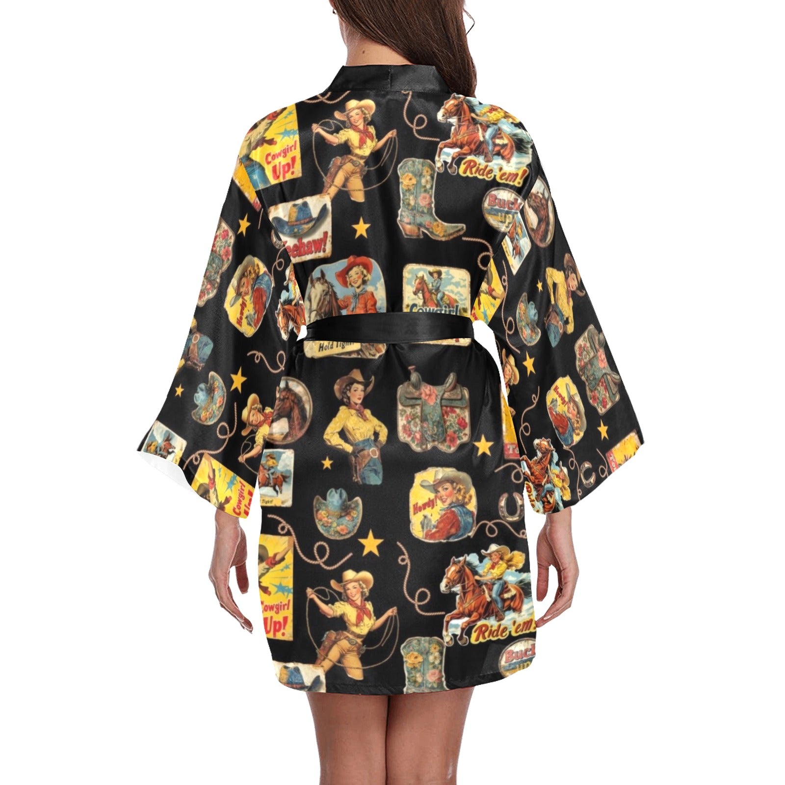 Vintage Cowgirl Collage Satin Kimono Sleeve Robe