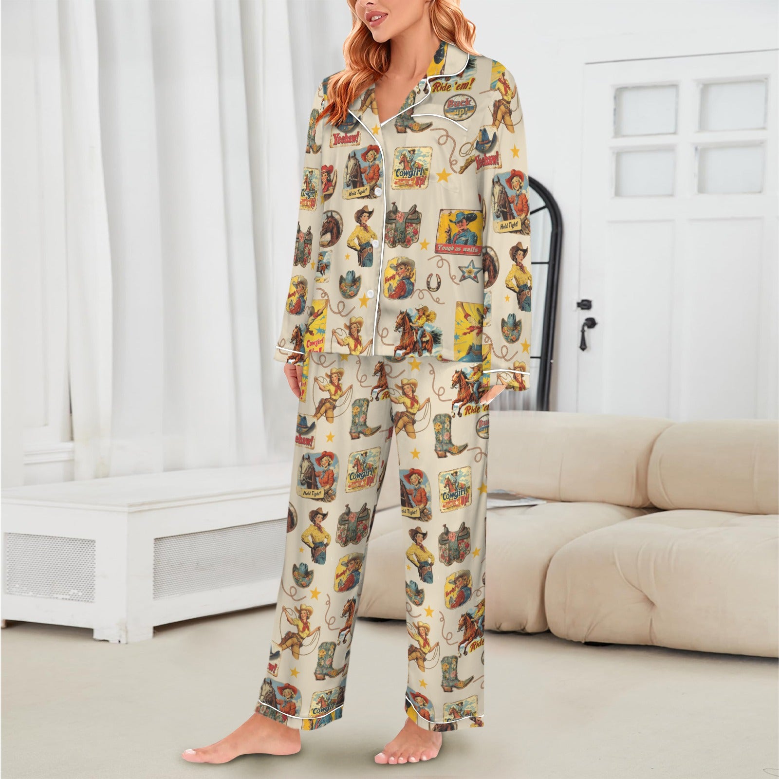 Vintage Cowgirl Collage Western Rodeo Pajamas