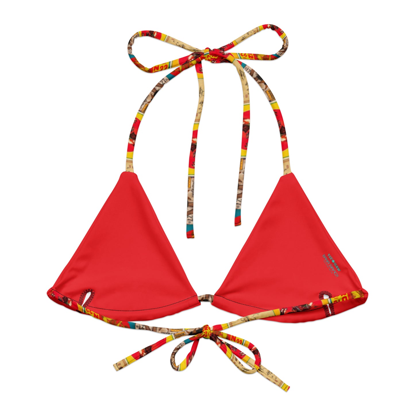 Get ready for the summer season with this eco-friendly All-Over Print Recycled Padded String Bikini Top. The top is made from soft recycled polyester, with UPF 50+ and versatile, stretchy straps ready for styling. Grab one today and pair it with a swim-ready outfit.