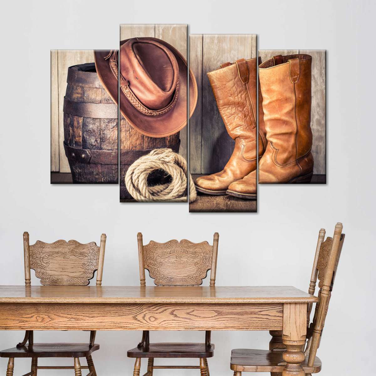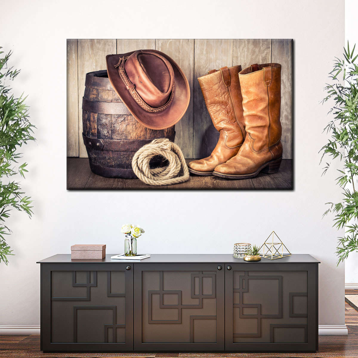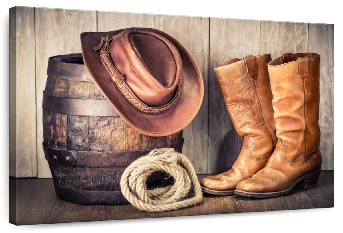 Western Cowboy Outfit Wall Art brings western style into your home in one easy step. This stunning canvas print will inspire you to enjoy the freedom of spirit like a true cowboy.