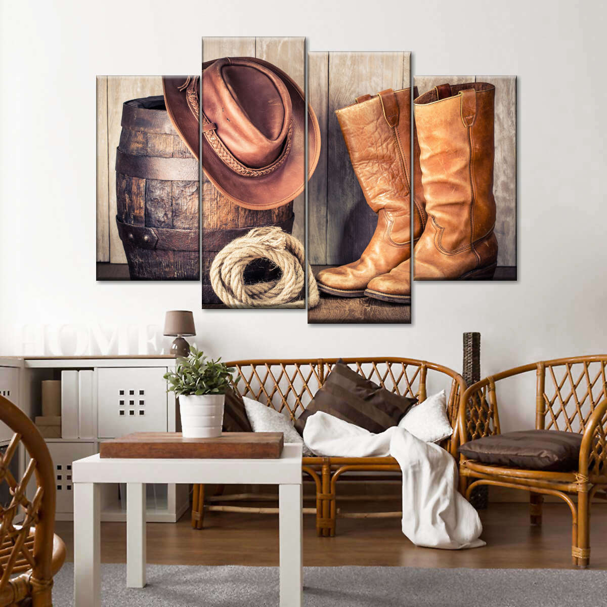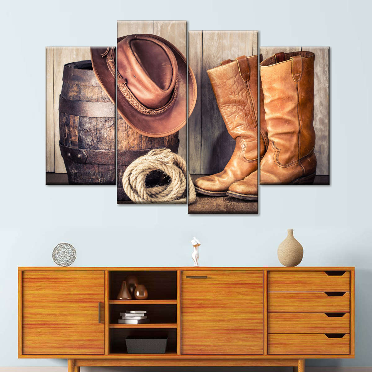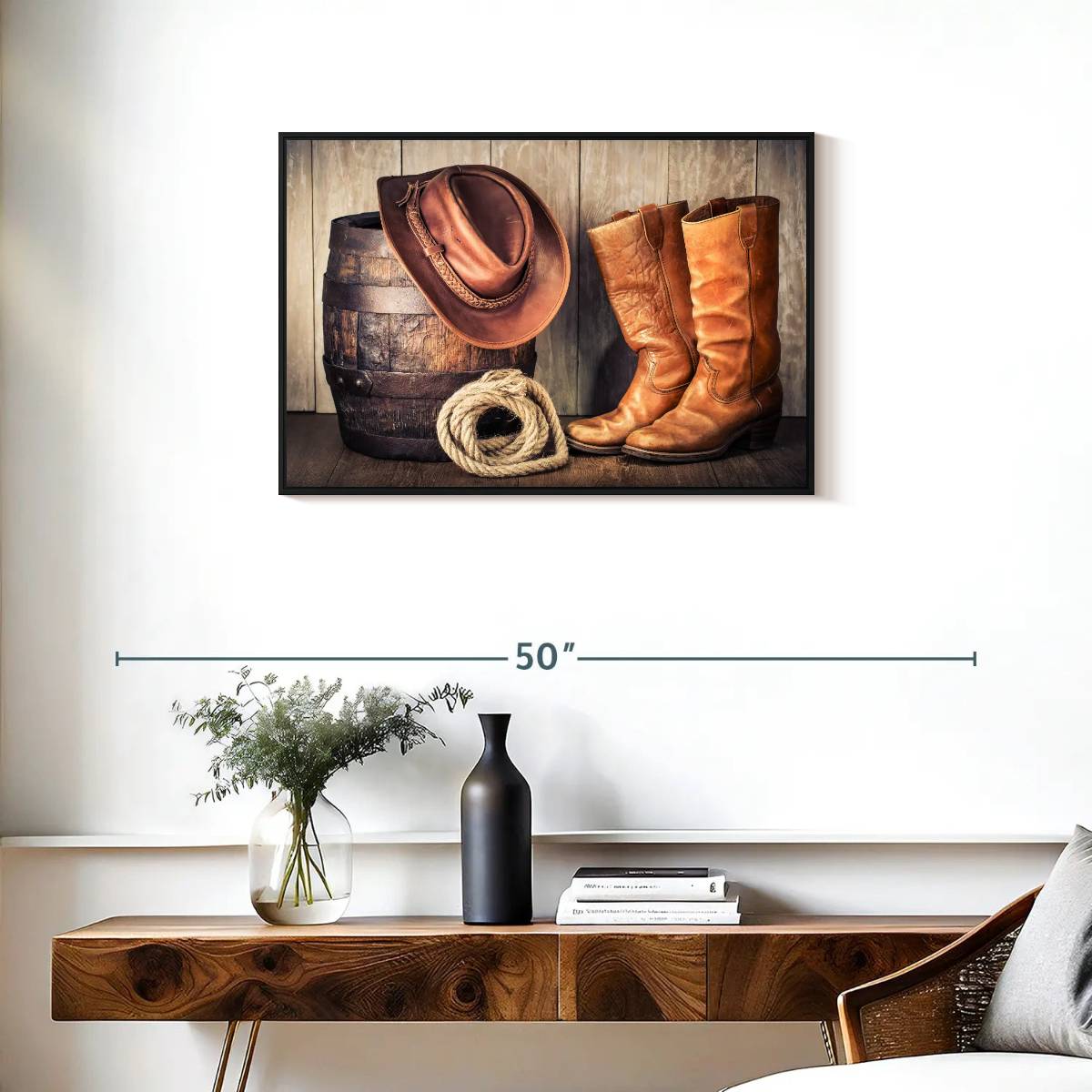 Western Cowboy Outfit Wall Art brings western style into your home in one easy step. This stunning canvas print will inspire you to enjoy the freedom of spirit like a true cowboy.