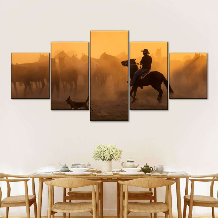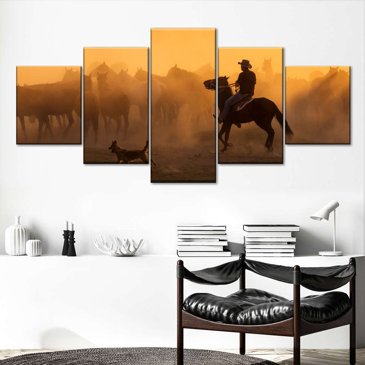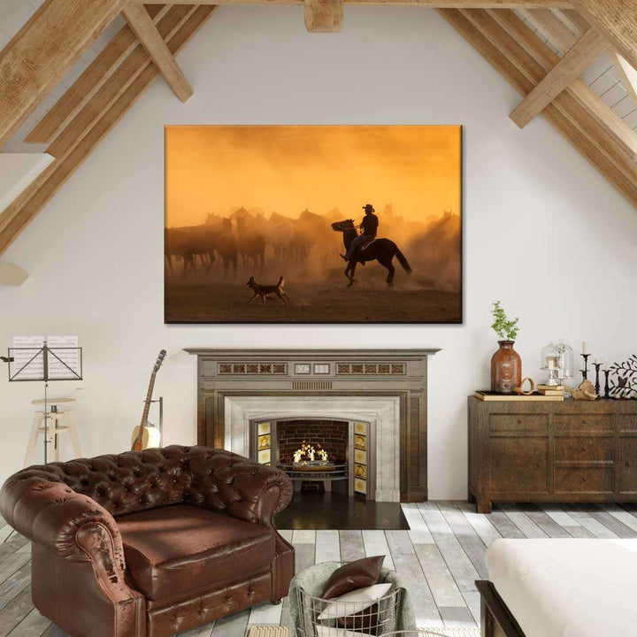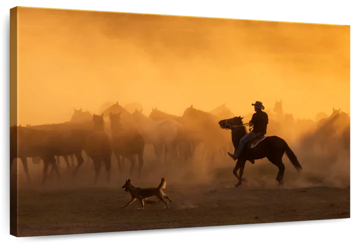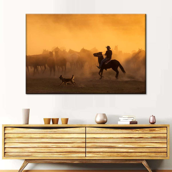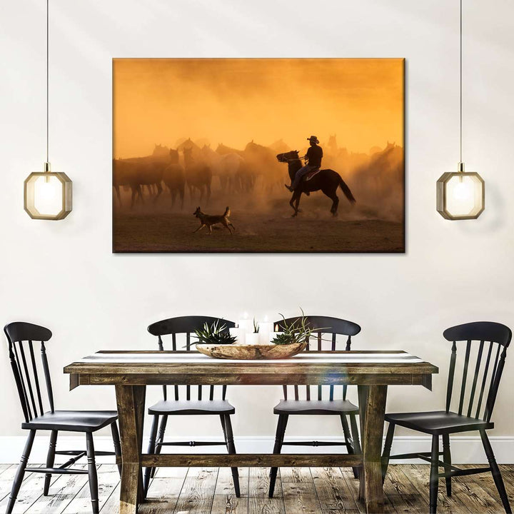 Western Herdsman Wall Art brings western style into your home in one easy step. This stunning canvas print will inspire you to enjoy the freedom of spirit like a true cowboy.