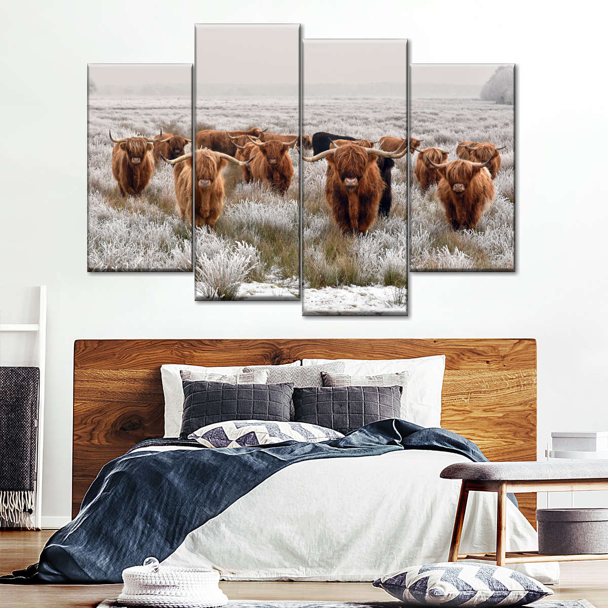 Winter Highland Cattle Multi Panel Canvas Wall Art will easily beautify any room. Bring this stunning art of your favorite animal into your home to set a positive tone to the entire space.